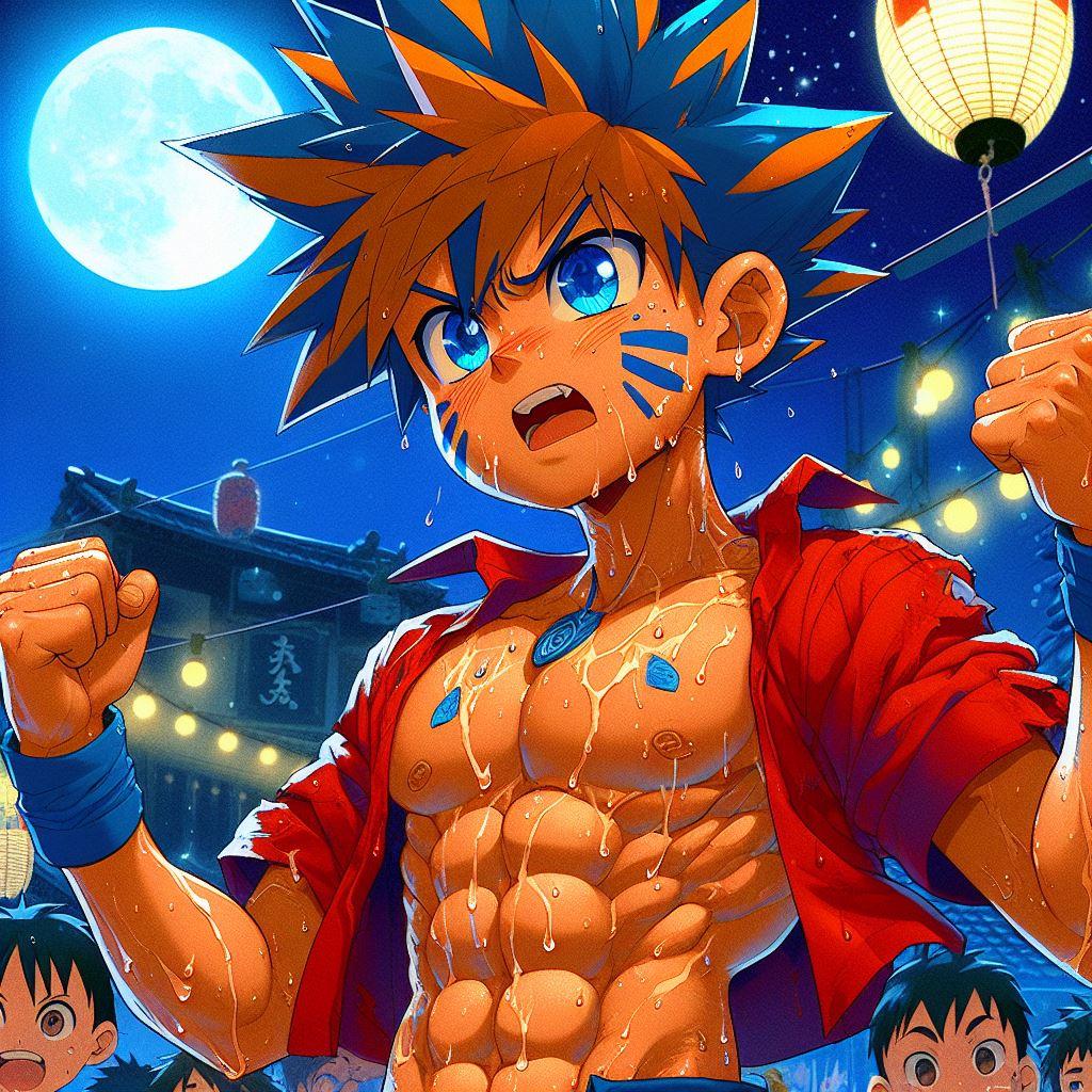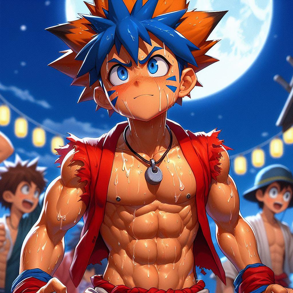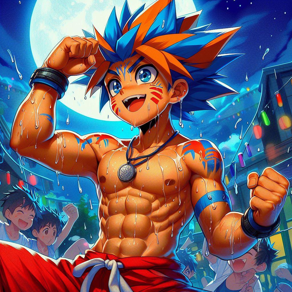 【R-18】青オレンジ髪、法被、色黒、顔射【筋ショタ】