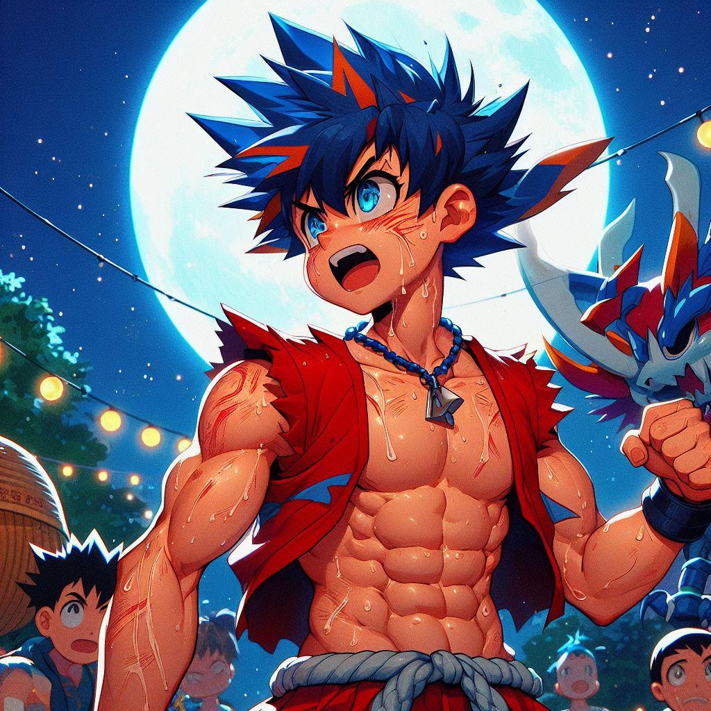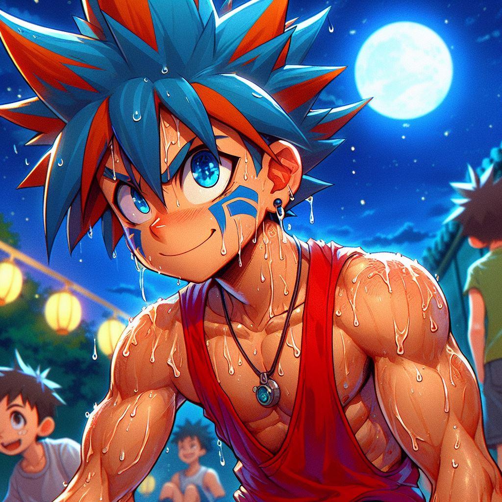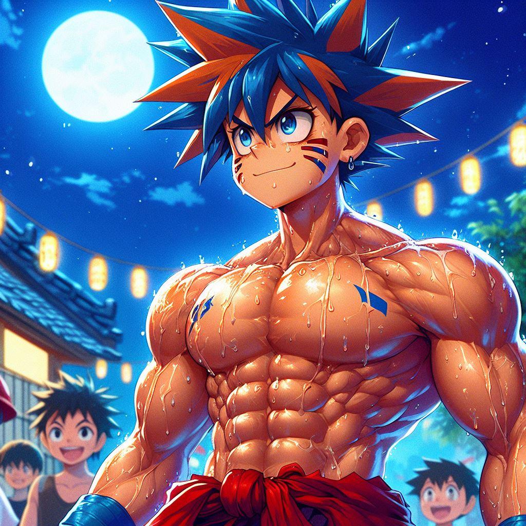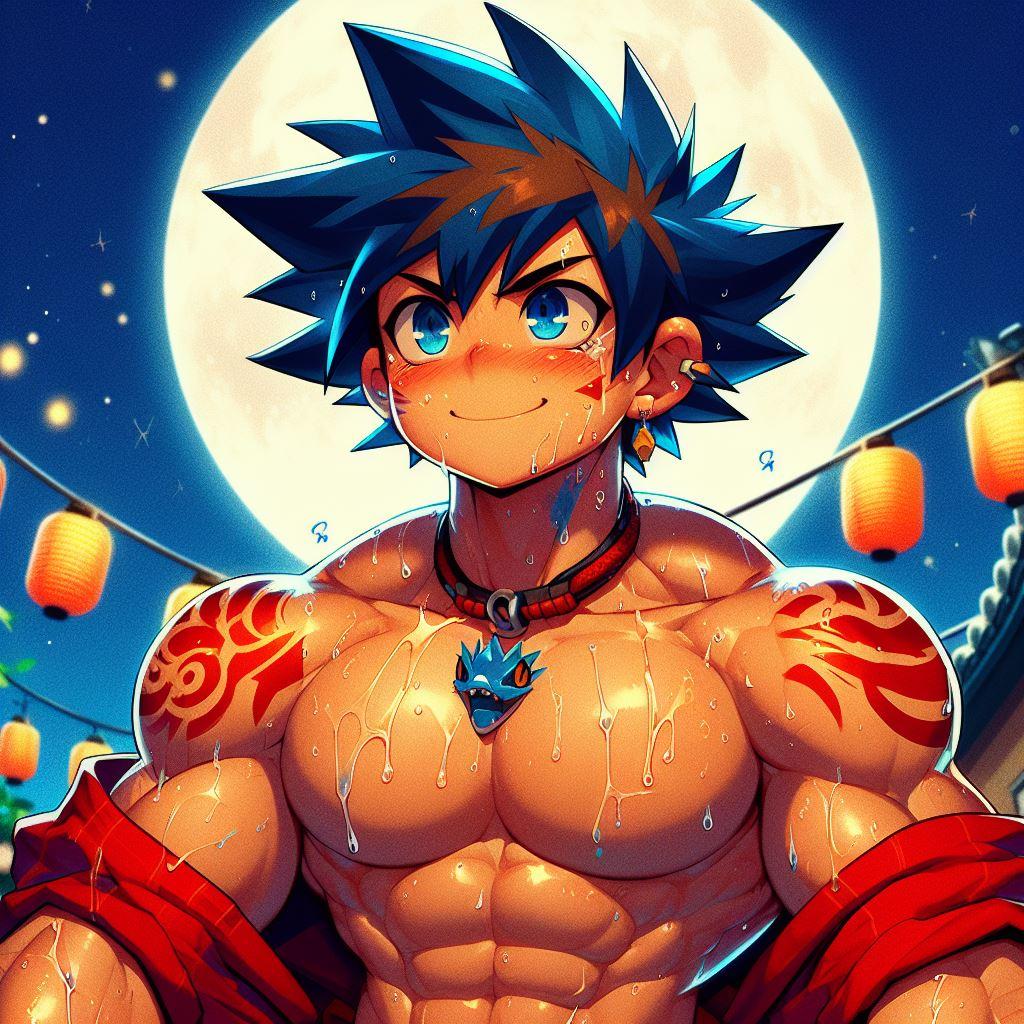 【R-18】青オレンジ髪、法被、色黒、顔射【筋ショタ】