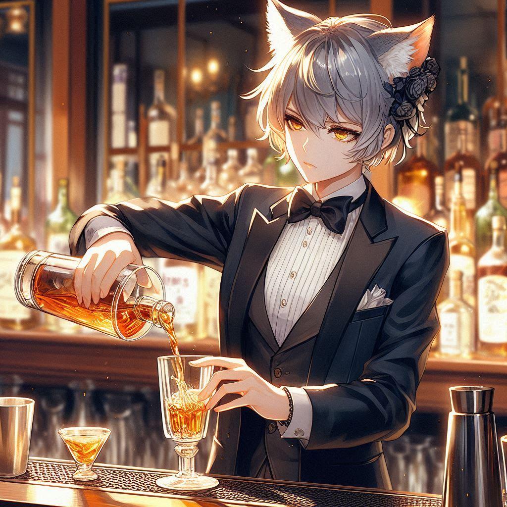 そして慣れないアウローラさんのサポートとしてうちの凪咲さんを。マンハッタンのような作り方が簡単なものならアドバイス出来そうということで、優し気で頼りがいのある感じでやってみました。