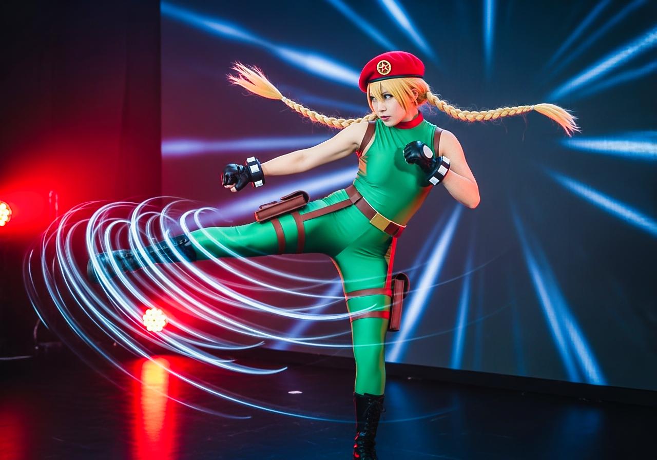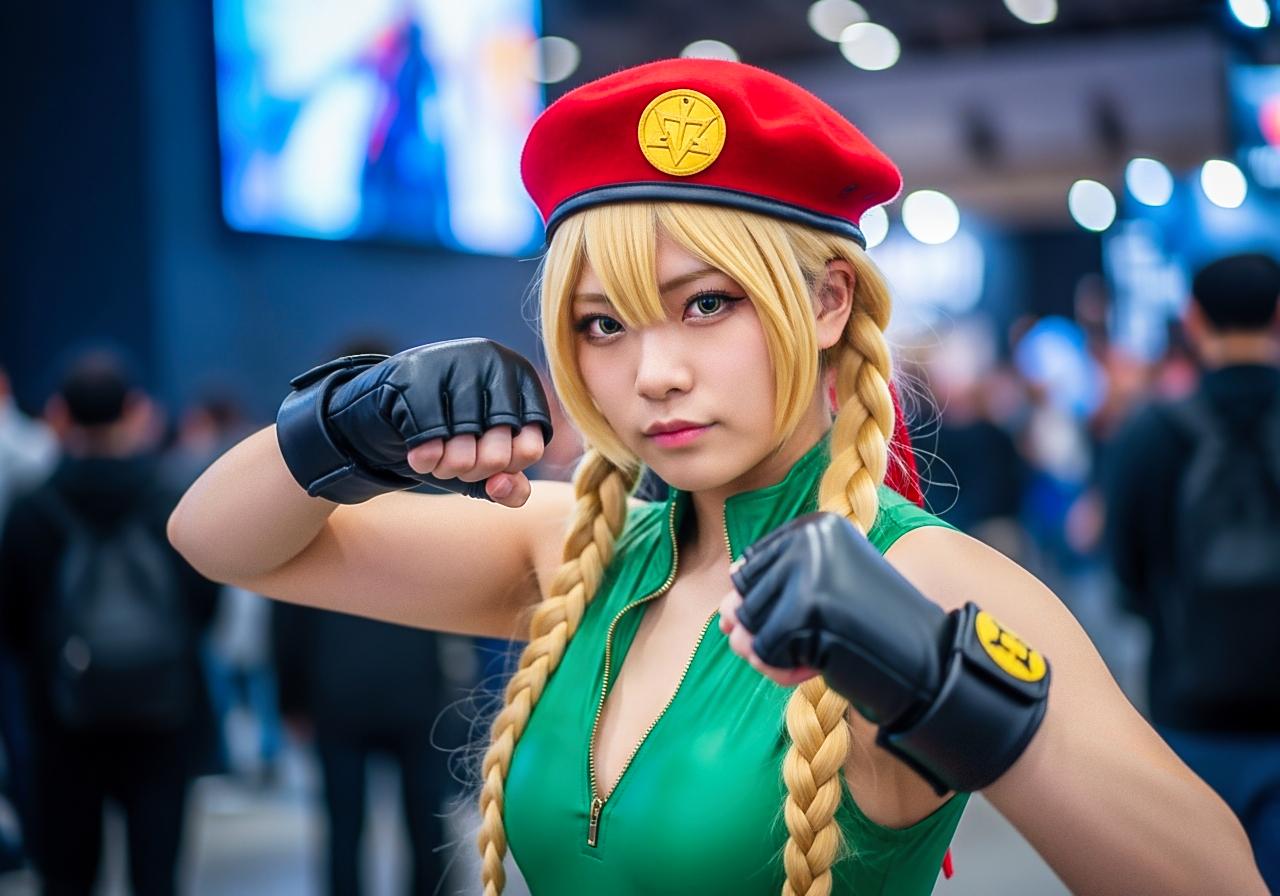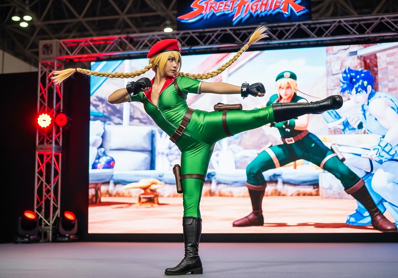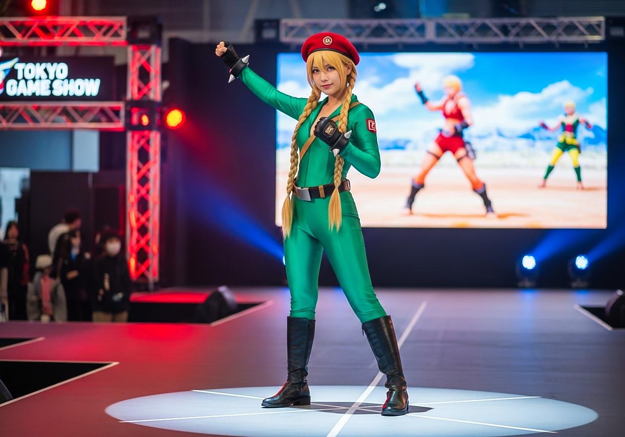 東京ゲームショウの格闘ゲームのキャラクターのコスプレをしているコスプレイヤーさん