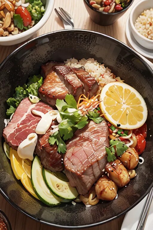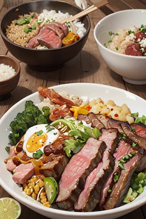 『ローストビーフと野菜のスタミナ丼』