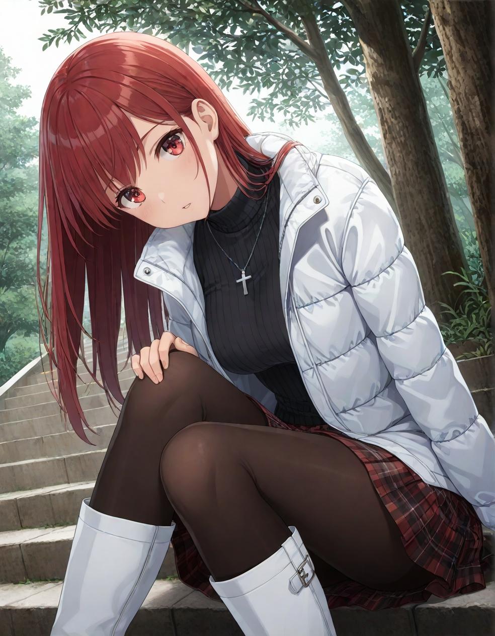 AURAちゃんは投稿企画バナーに、タータンチェックのスカート、白ブーツを足してみました。