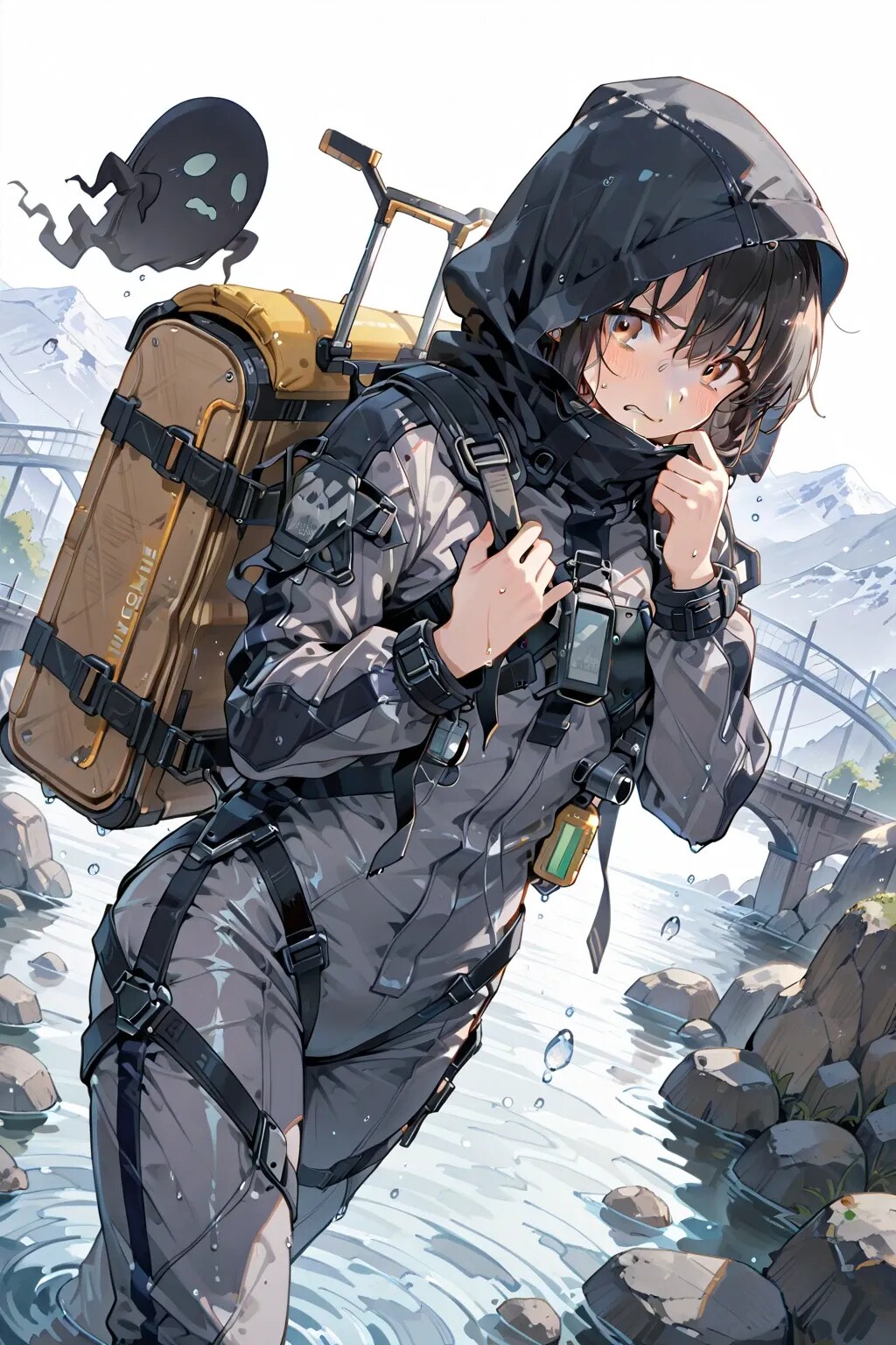 突然、川の流れが強くなり、リナが岩から滑り落ちそうになる。「ほら、言った通り!」ヨムは素早くリナの手を引くように漂い、彼女を助ける。