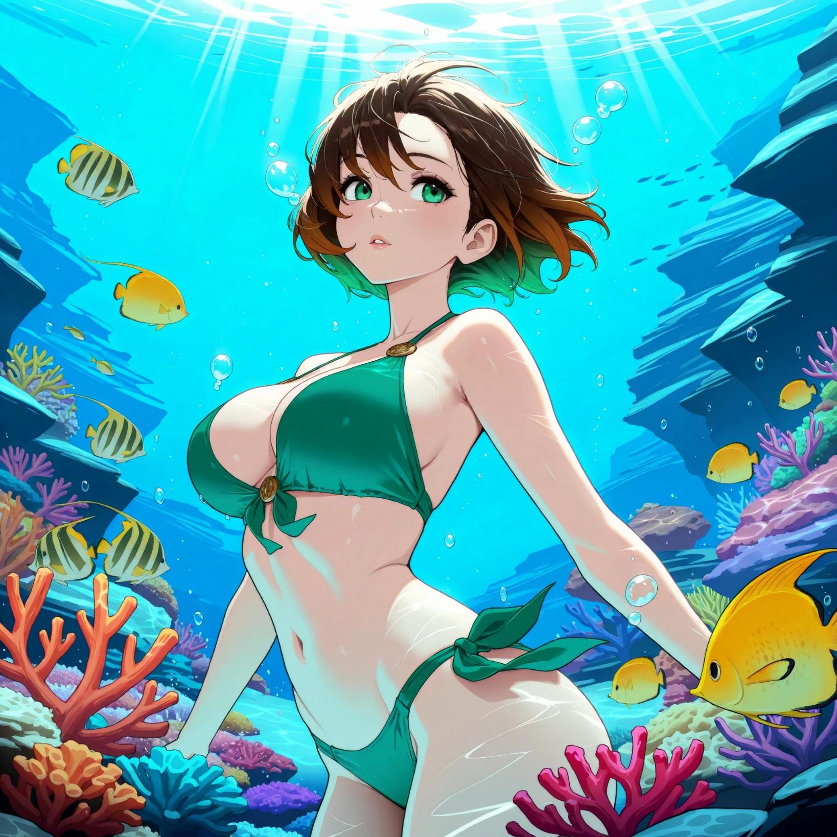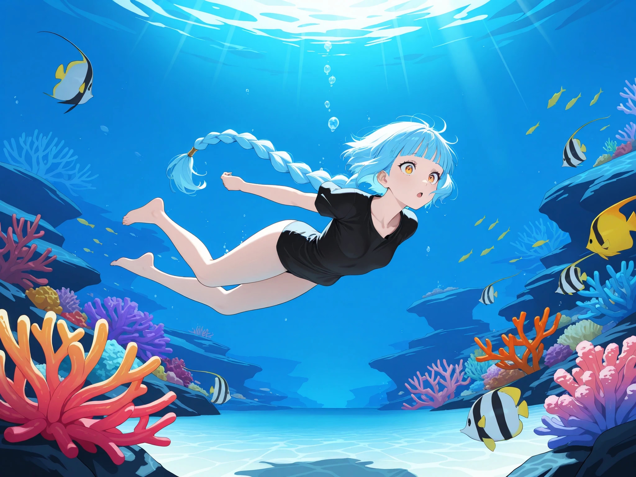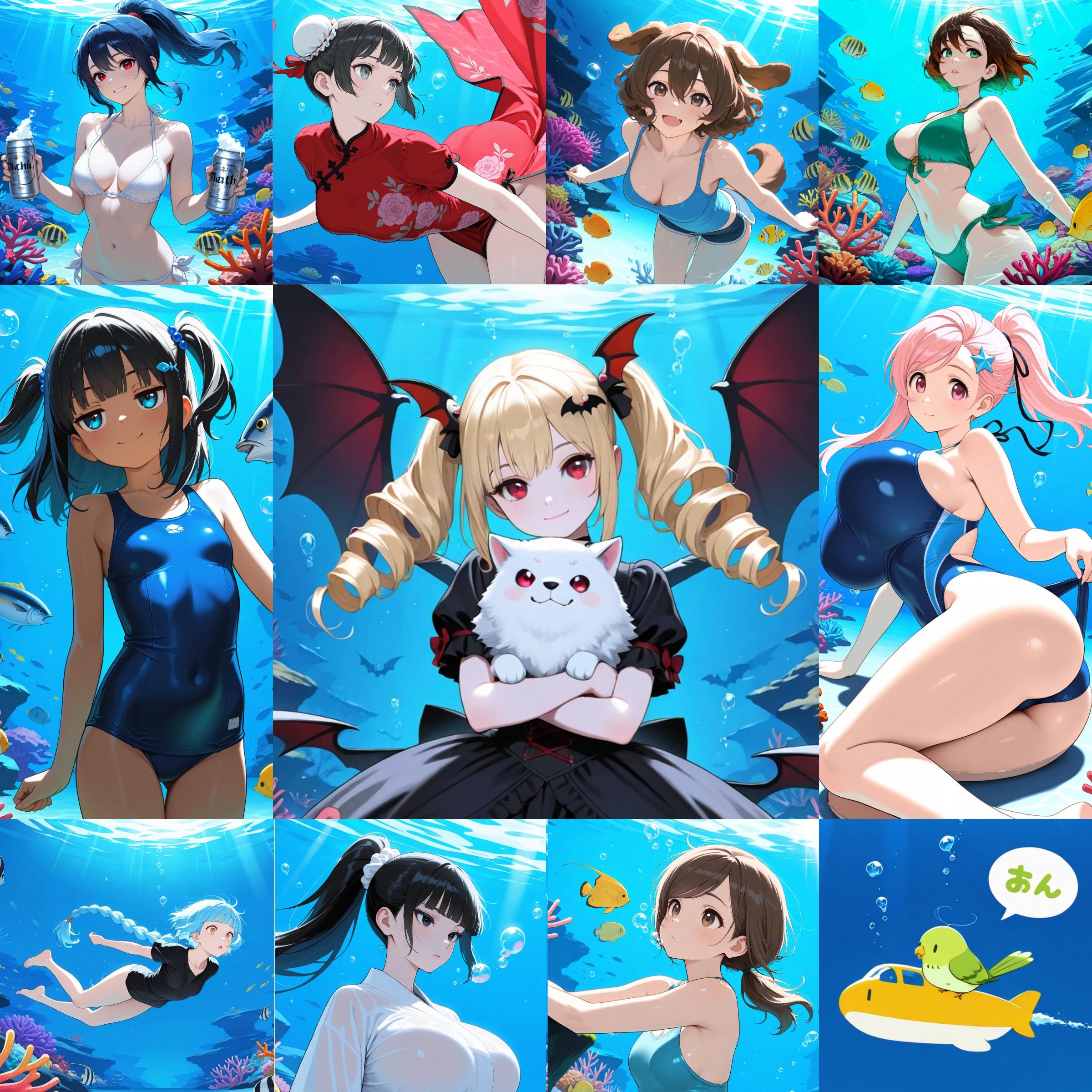 何度か生成させていただくにあたり、水の中だとpale skinの色が悪く見えてしまうので肌の色の調整が大変でした。ミルヒヴァイスちゃんも一緒!