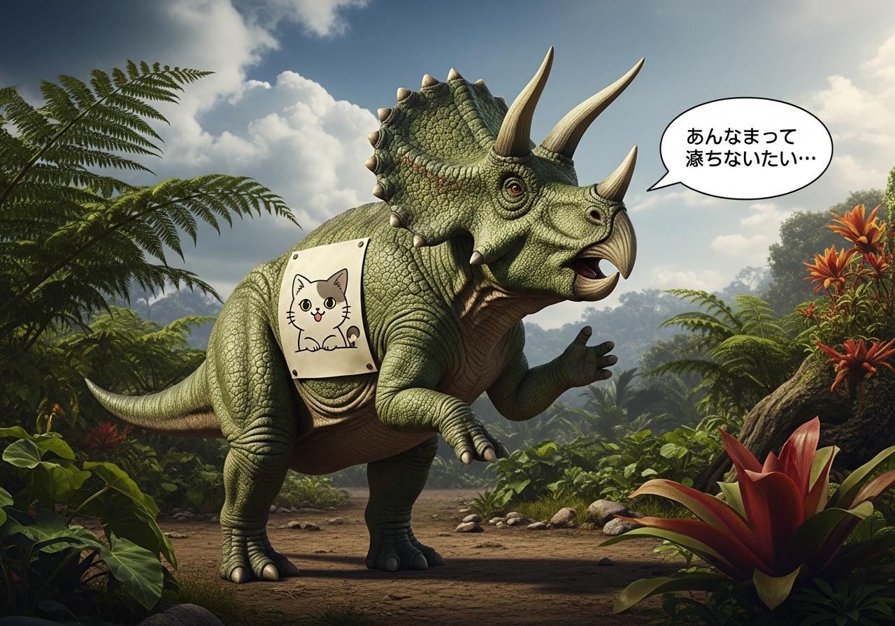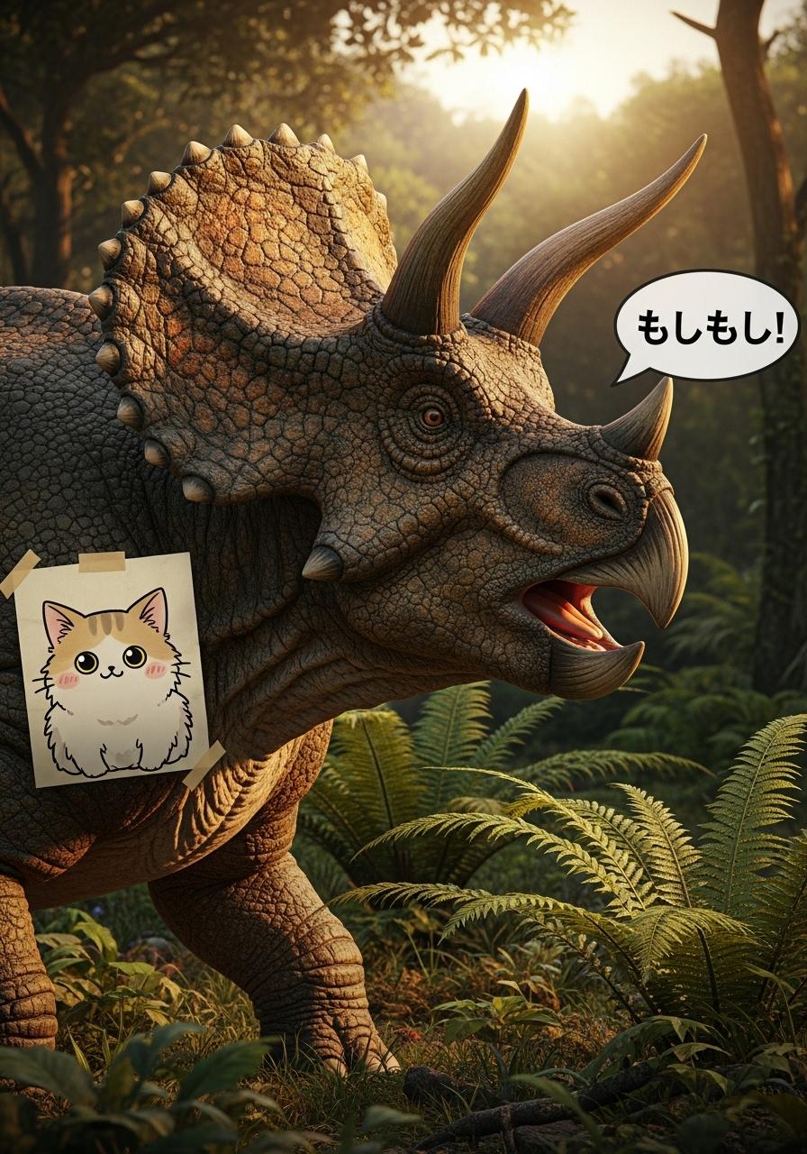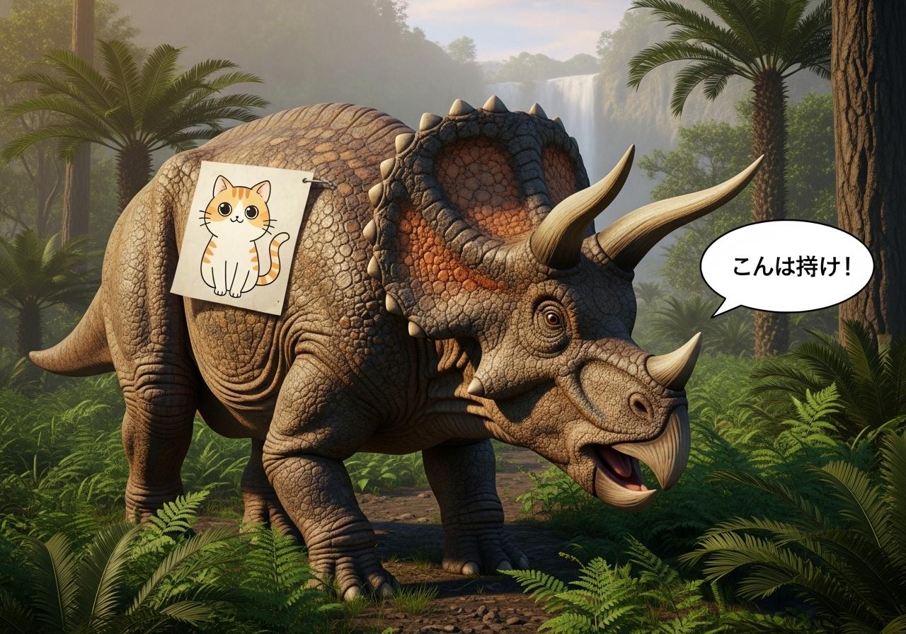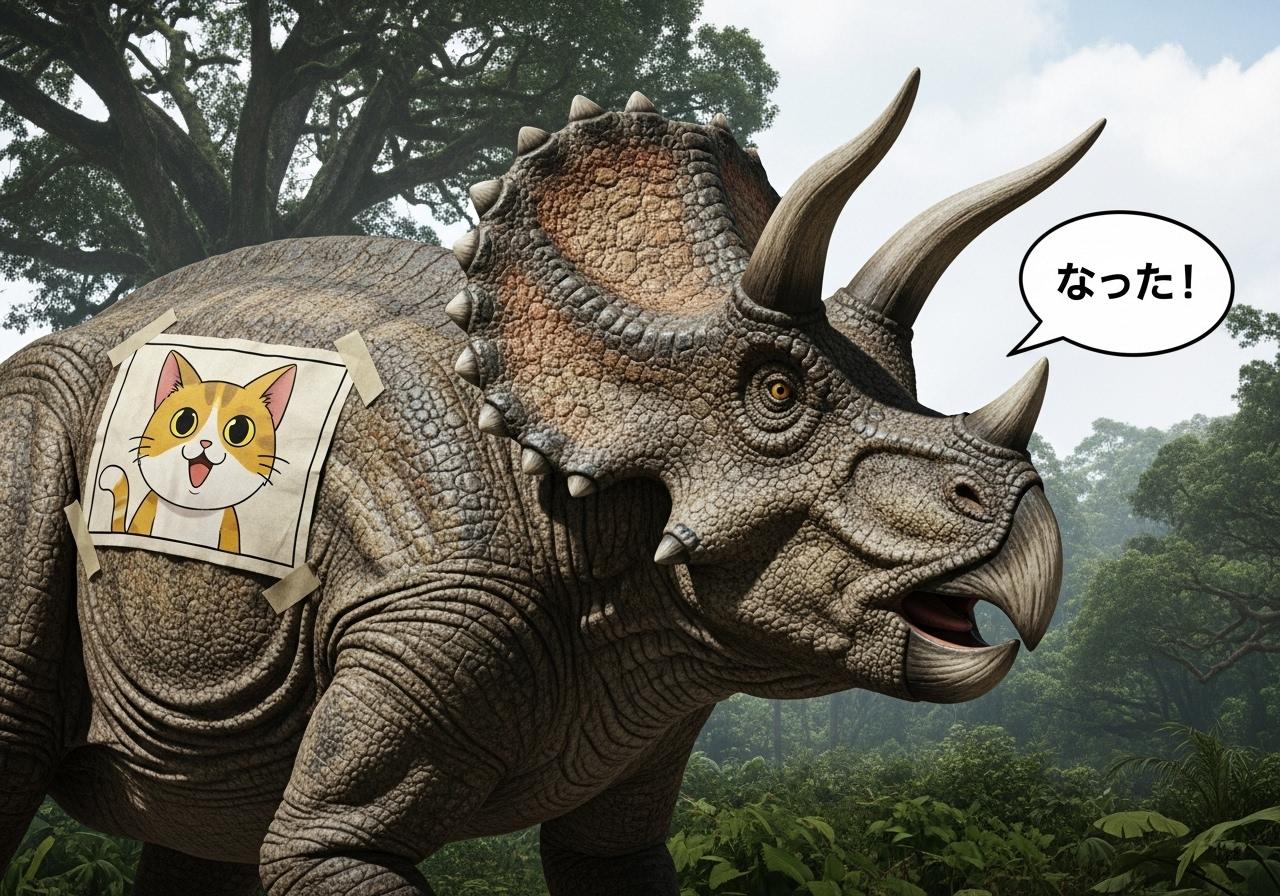 途中まではトリケラトプス単体でやってたんだけど、ねこさんの絵を付けたー
