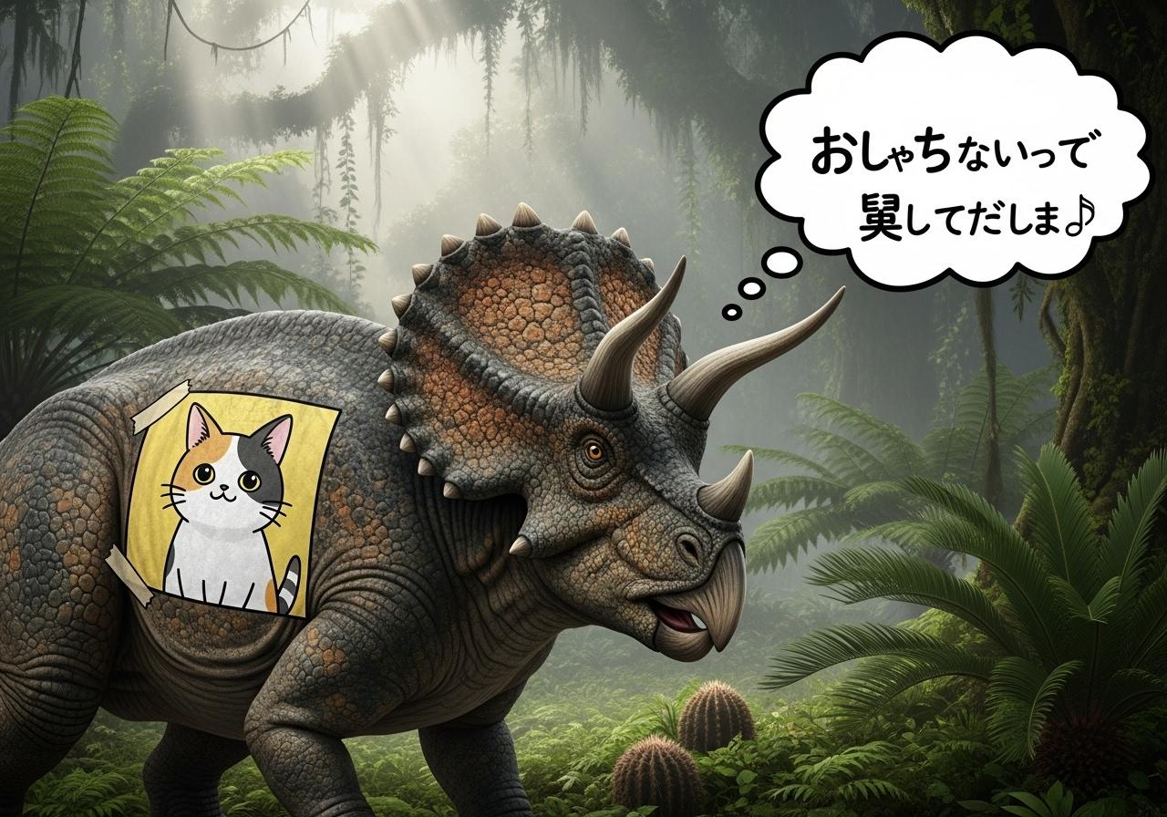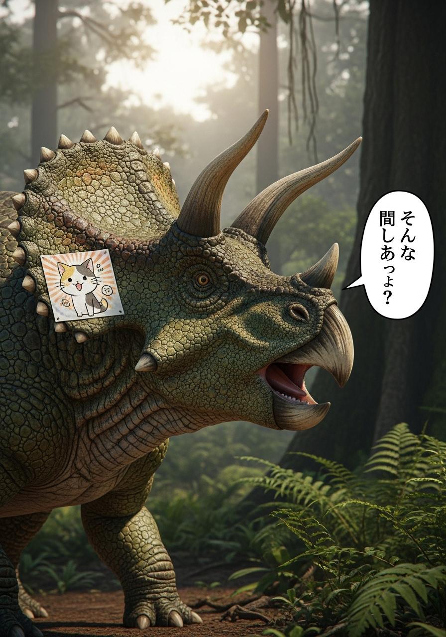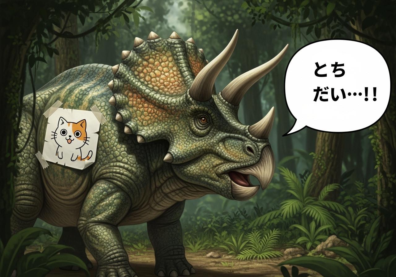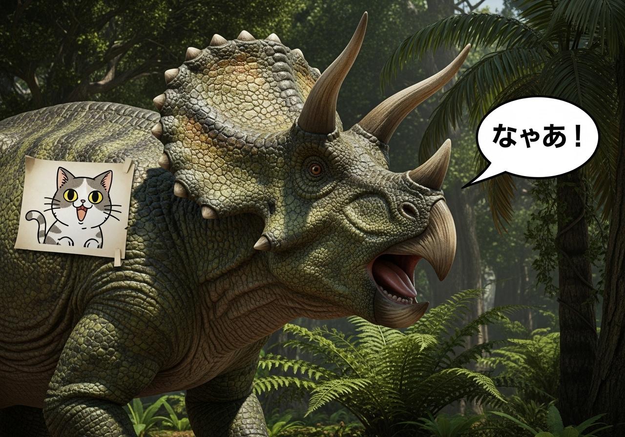 途中まではトリケラトプス単体でやってたんだけど、ねこさんの絵を付けたー