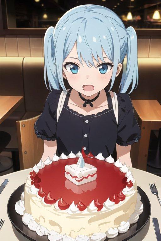 裕福な家庭の女の子が豪華なホテルで誕生日ケーキを食べだす。