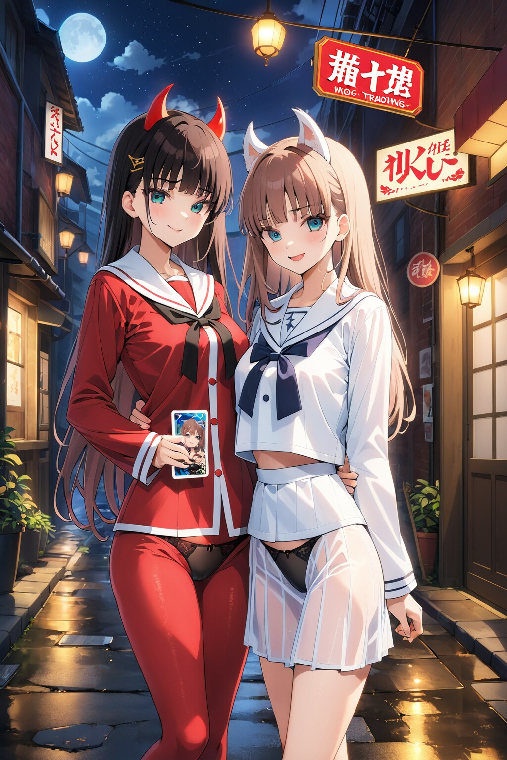 ⁉︎まさか、夜の雨上がりに現れ、倒した相手の下着を奪うって噂のサキュバス姉妹デュエリストって…こいつらか!(ぁ