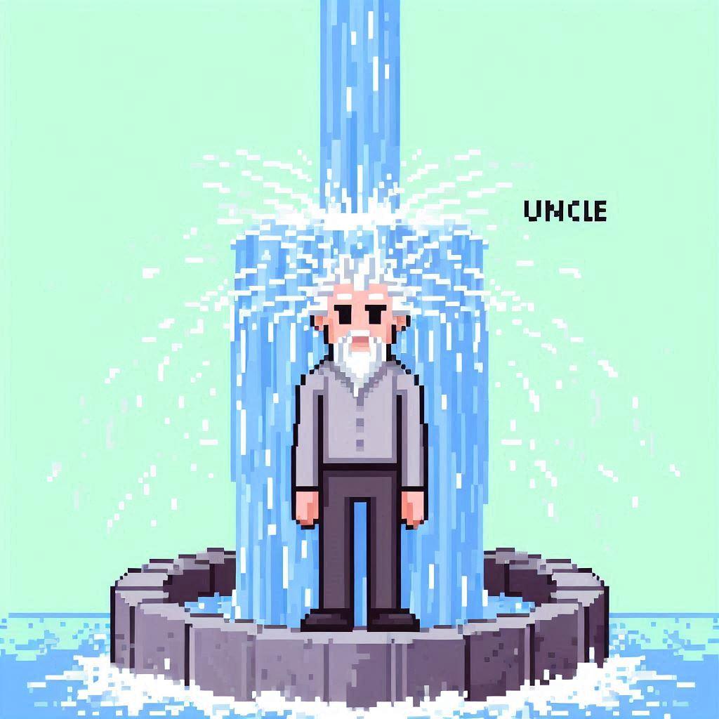 ダジャレとか関係なくただ水を浴びせられているおじさん
