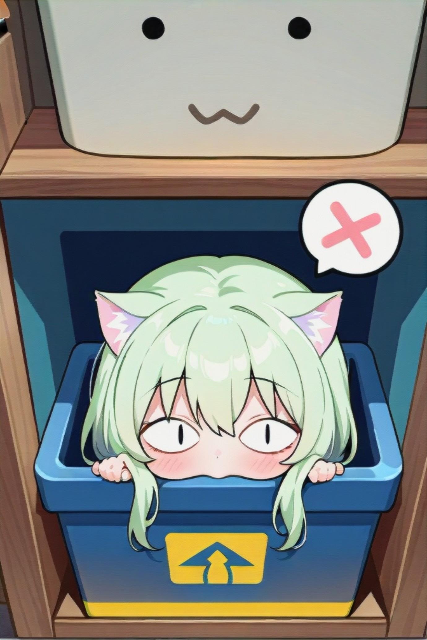 隠れる緑髪ちゃん