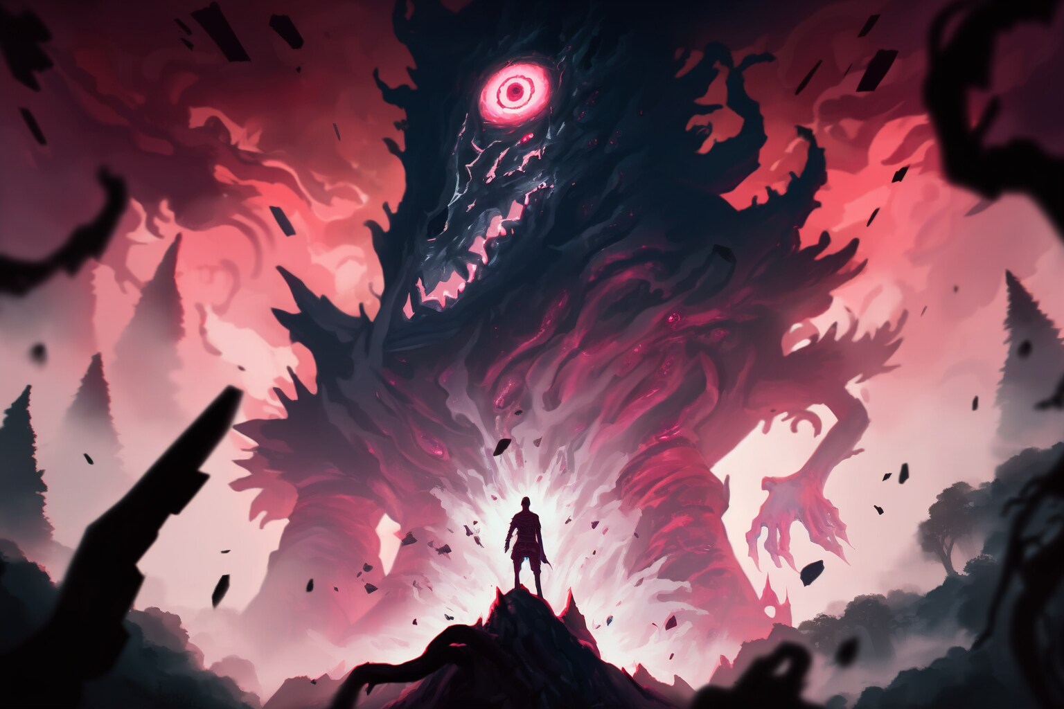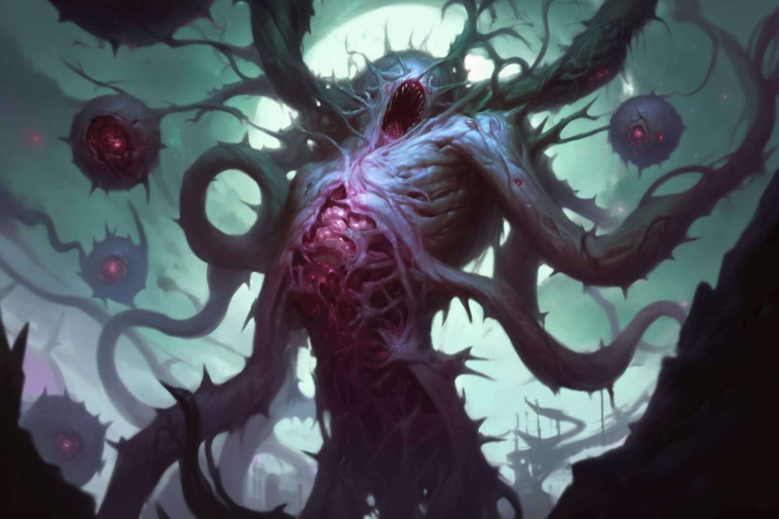 そこには、ぎょろりと大きな目玉で獲物を探す、影のように漆黒の身体を持つ狼と、苦悶の叫びを上げながら、触手を振り回す巨大なゾンビの姿があった。