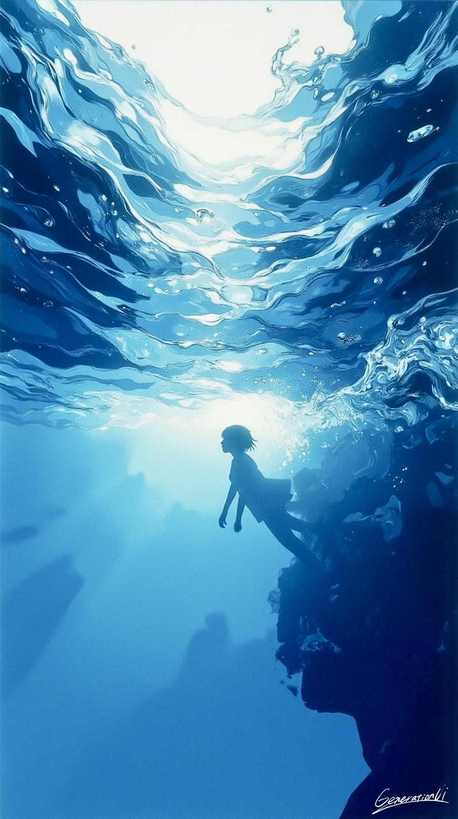 深い蒼の中、彼女は迷いも恐れも脱ぎ捨て、