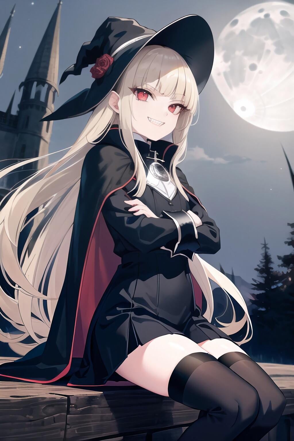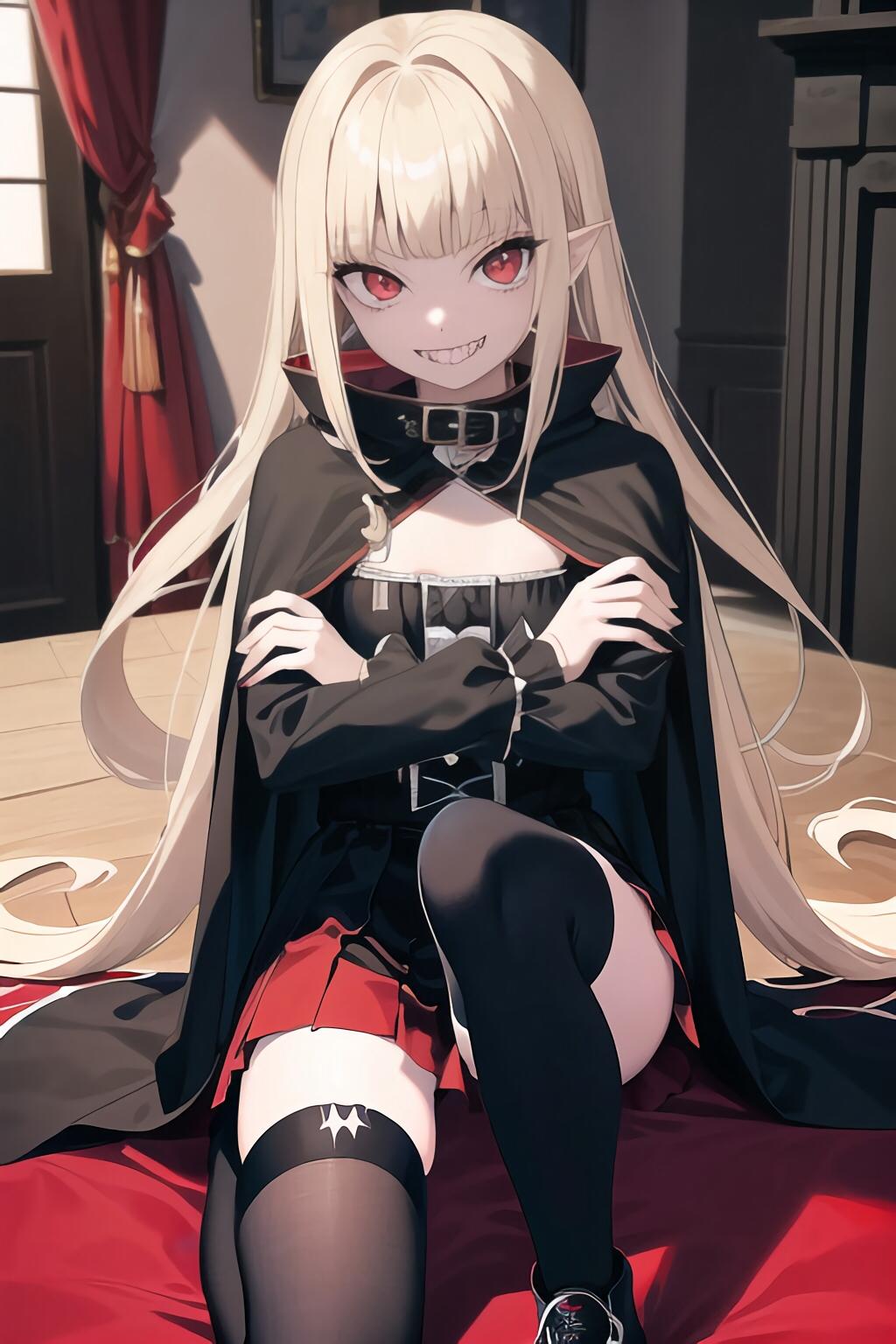 吸血鬼の女の子。一見怖そうに見えますが、本家アスタロト様のところではコミカルな様子をたくさん見せてくれます。(着ぐるみ着たりスマホ触ったり爆睡したりw)