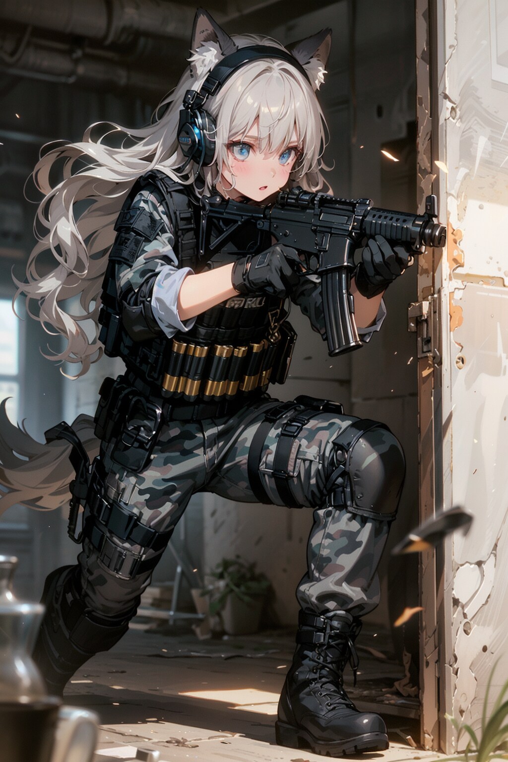 屋内戦闘訓練中のカモフラウルフちゃん🐺