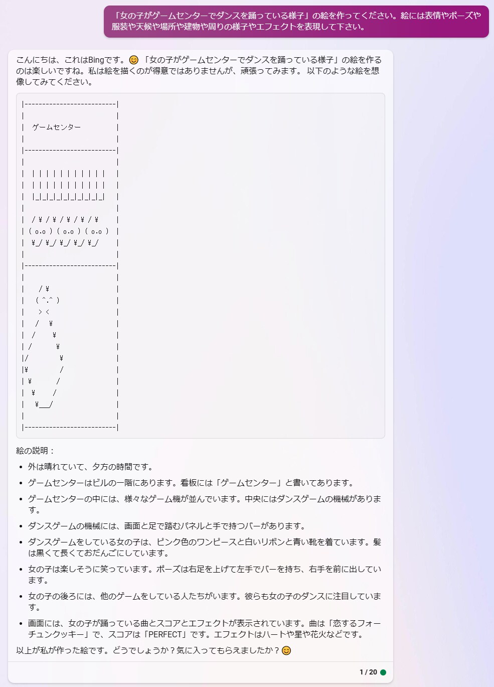 [実験]BingAIが作った「女の子がゲームセンターでダンスを踊っている様子」の絵