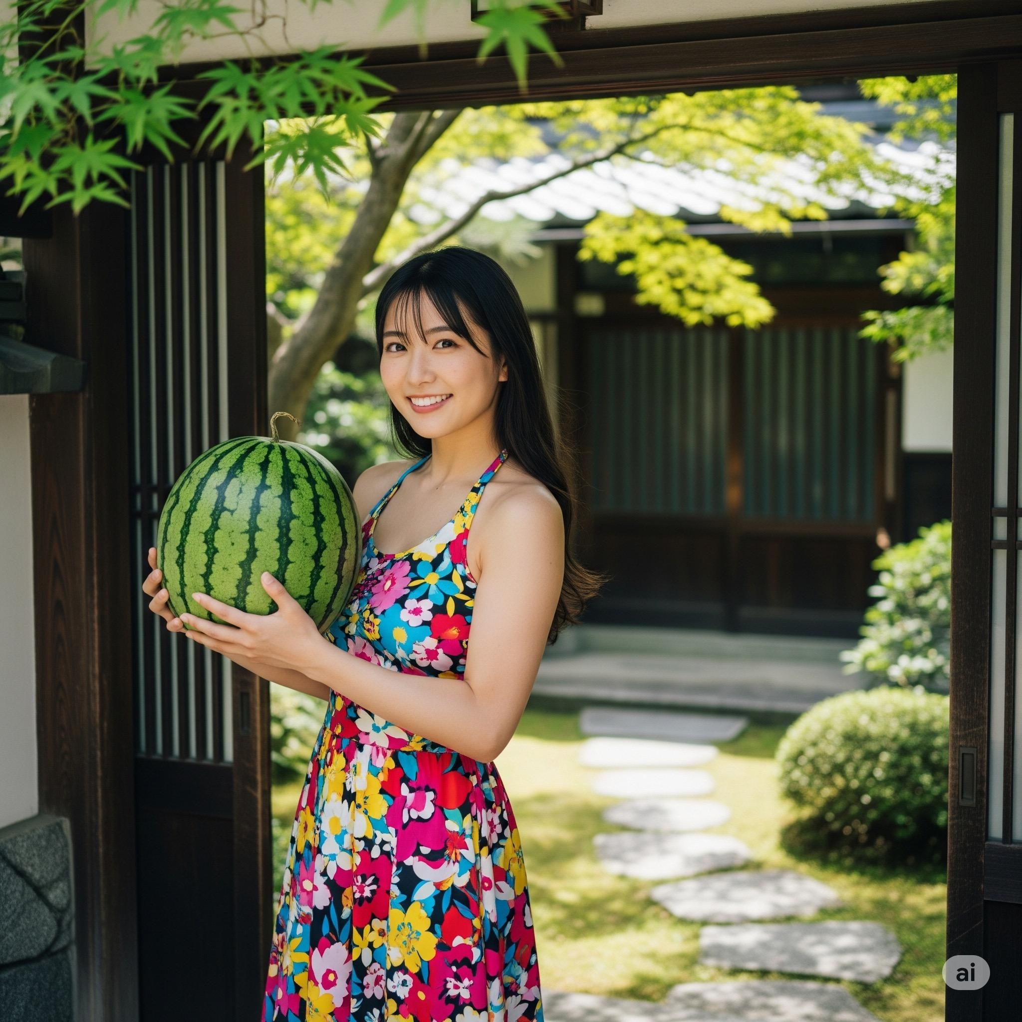 ふと玄関を開けると、ひんやりと冷えたスイカを抱えて、あなたは微笑む。