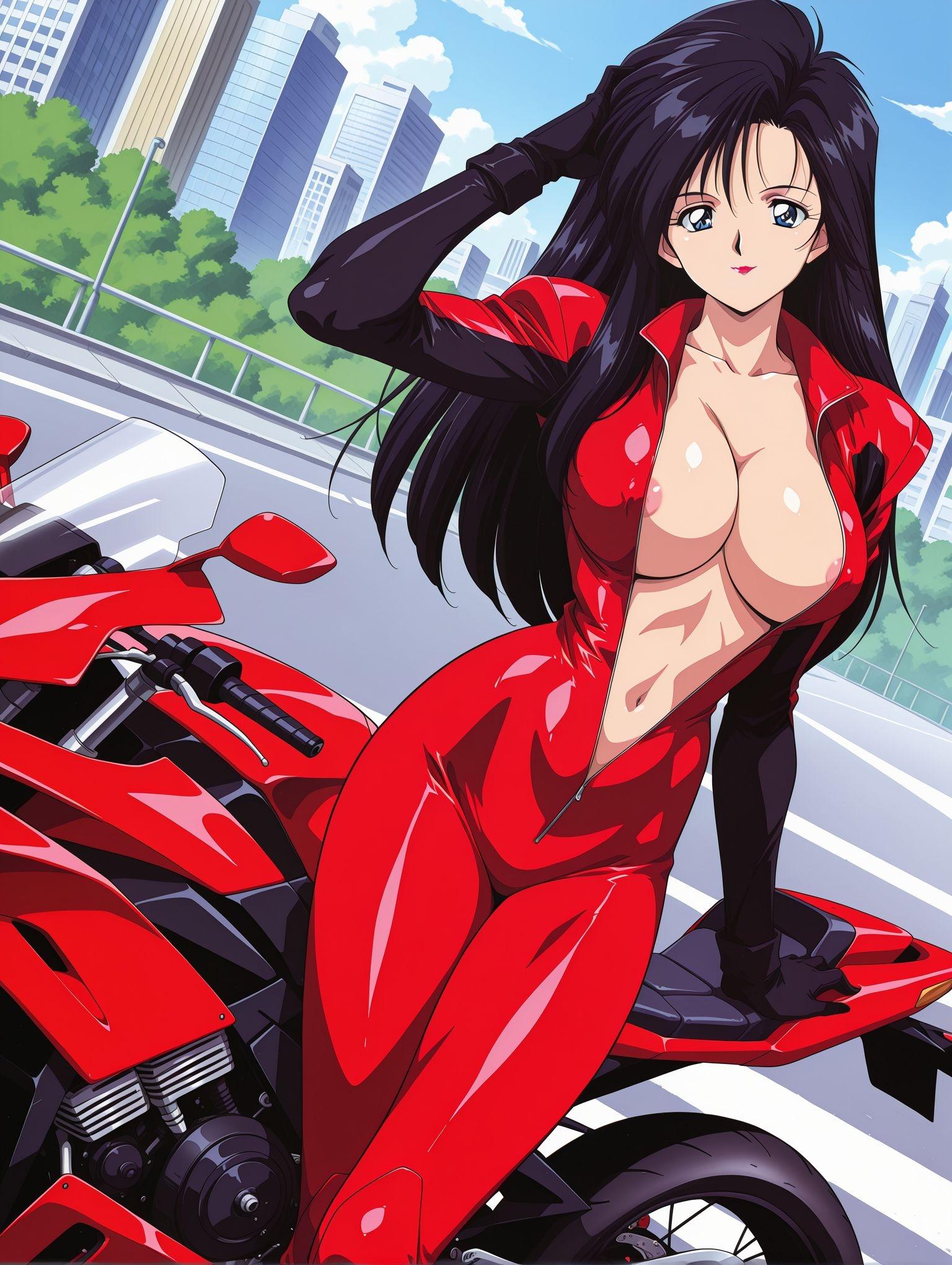 乗り物を生成したのは初めてですが、「racing motorcycle」という単語一つで、画像のようなバイクが簡単に出せてしまう…
