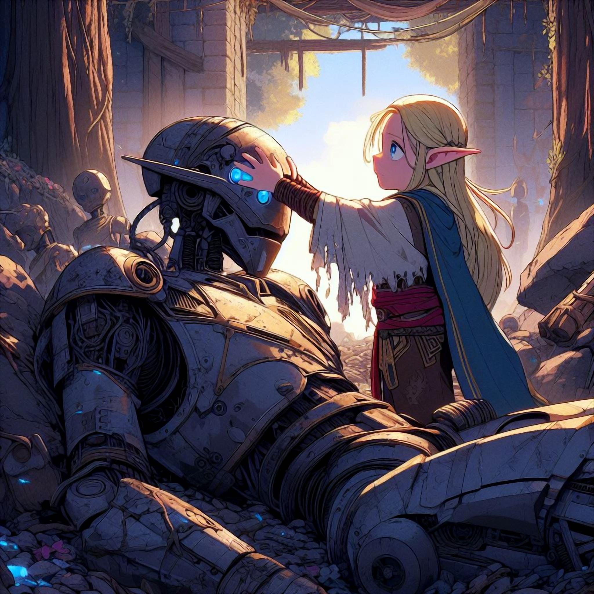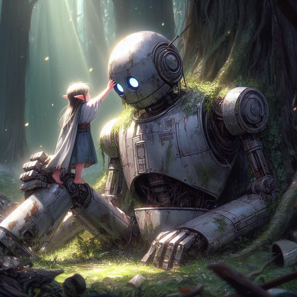 🤖の耳がエルフ耳っぽくなってるのがDalle3くん気が効いてる♪