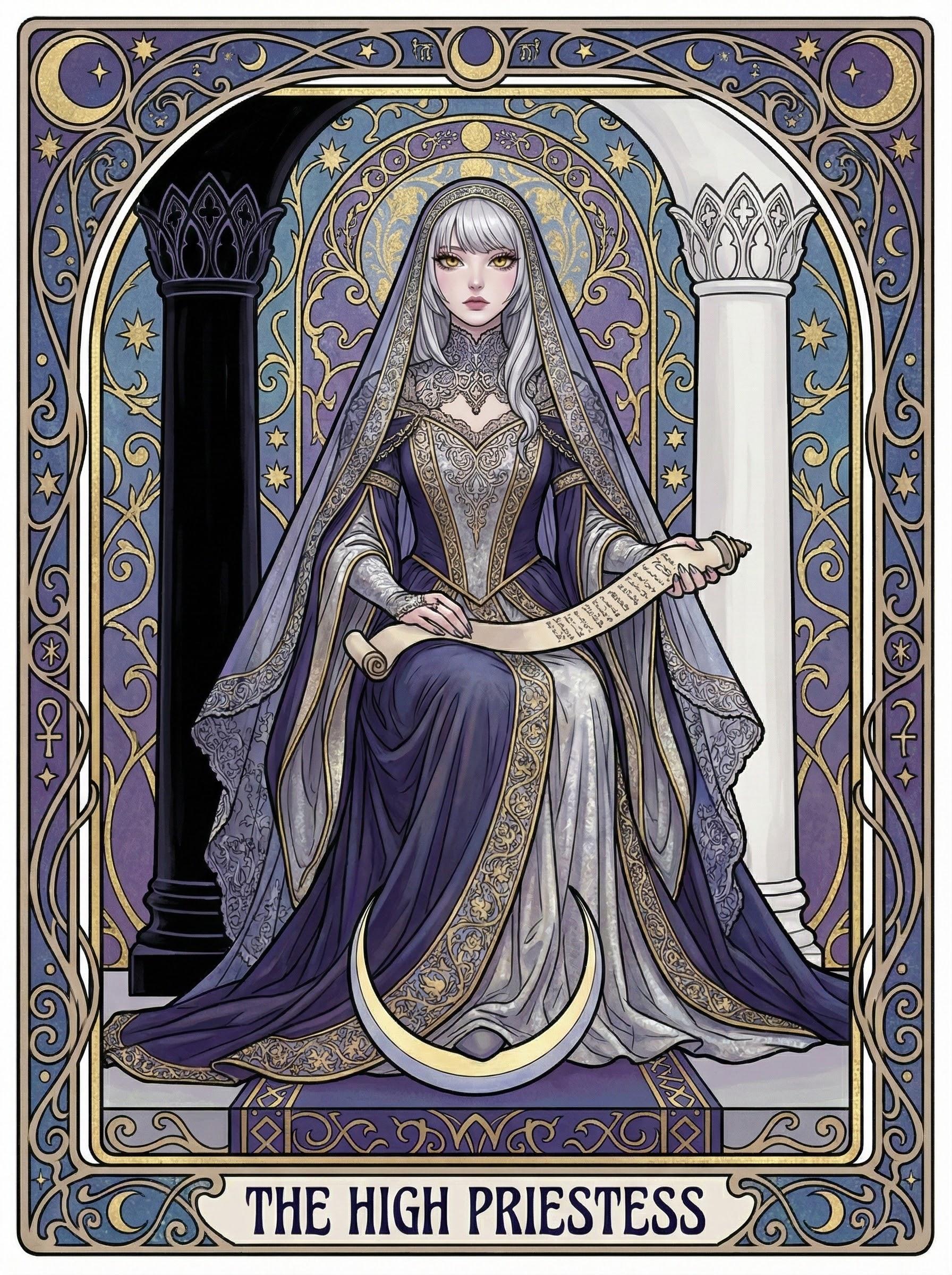 アール・ヌーヴォー様式のデザインでレナータを描き、物理テクスチャエンジンを用いて「Textured Paper (紙の繊維感)」へのインクの沈み込みと、表面の「Gold Foil (金箔押し)」の反射を再現しました。