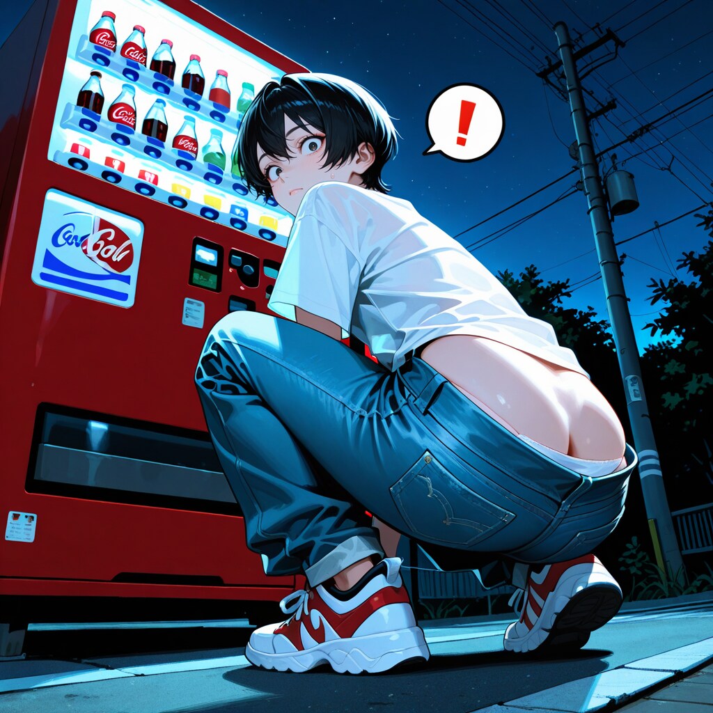 取り出し口からジュースを取り出すとき、ズボンが下がってたんで