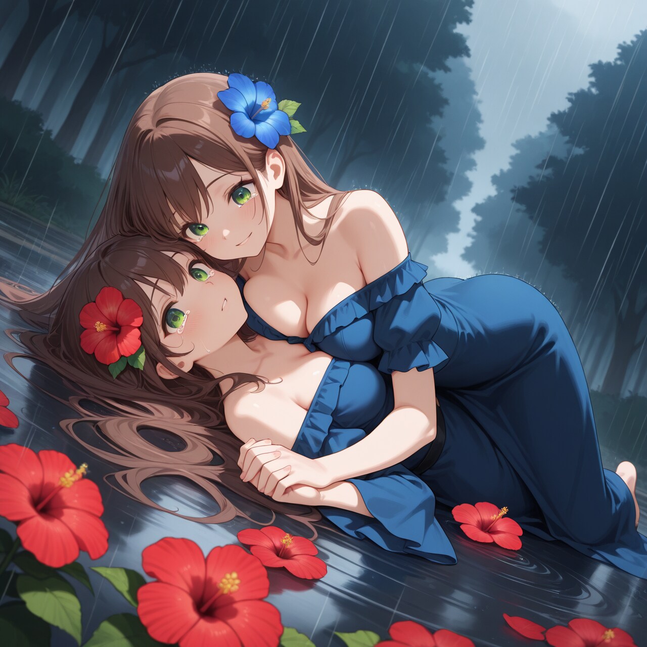 赤と青の花が波紋に揺れる。柔らかな胸が触れ合い、濡れた髪が絡み合っても、彼女たちは同じ夢を見てはいなかった。片方はそれを焦がれるような祈りだと思い、もう片方はそれを壊れかけた楽器のように扱った。