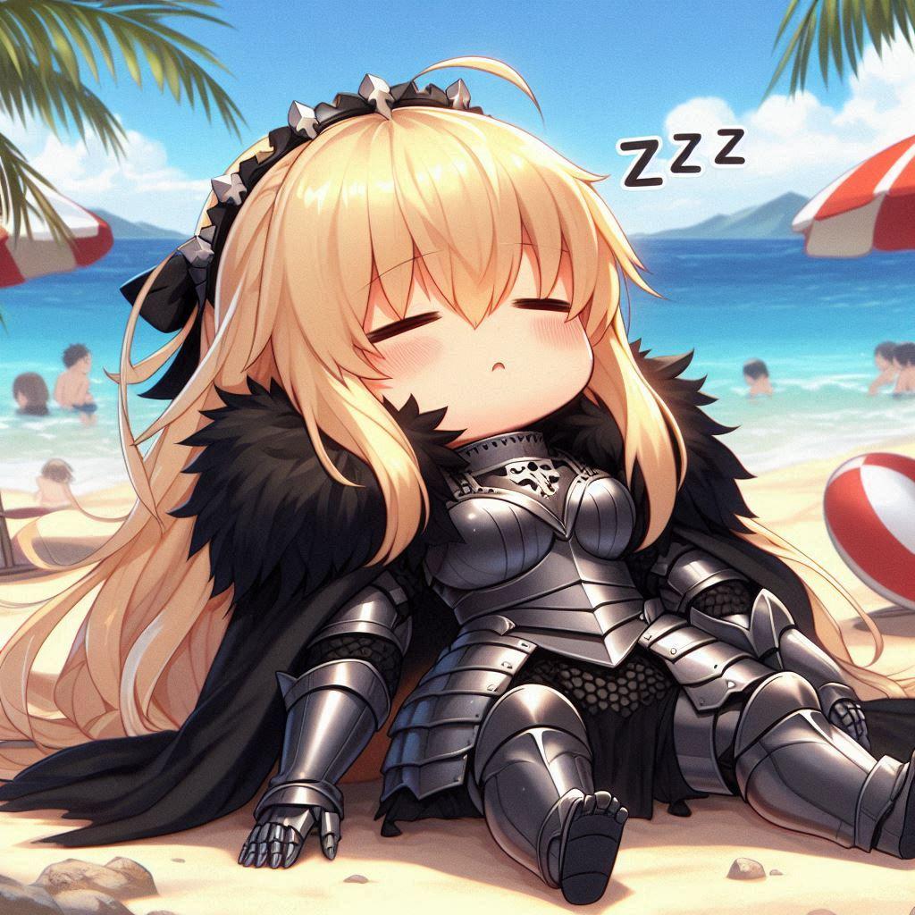 海で、ねむねむエリザベス
