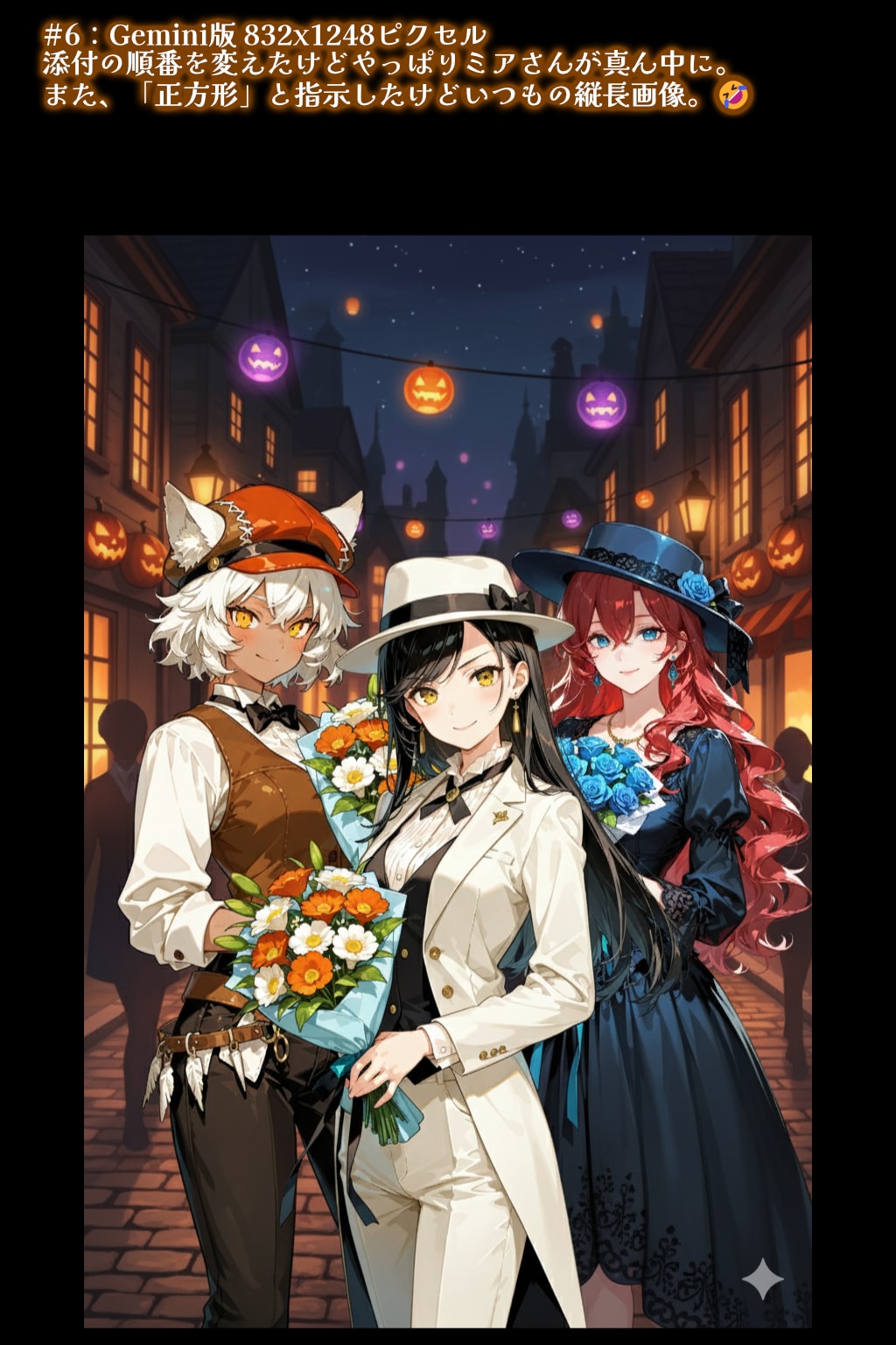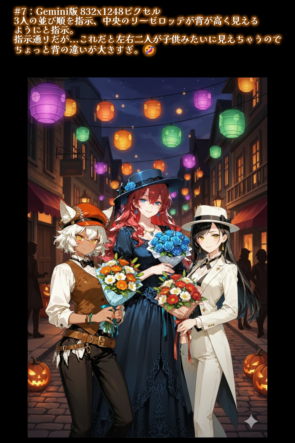 ●#5~8枚目:3人の元絵を添付、Gemini(nano-banana)さんの力で3人共演を試みたもの。