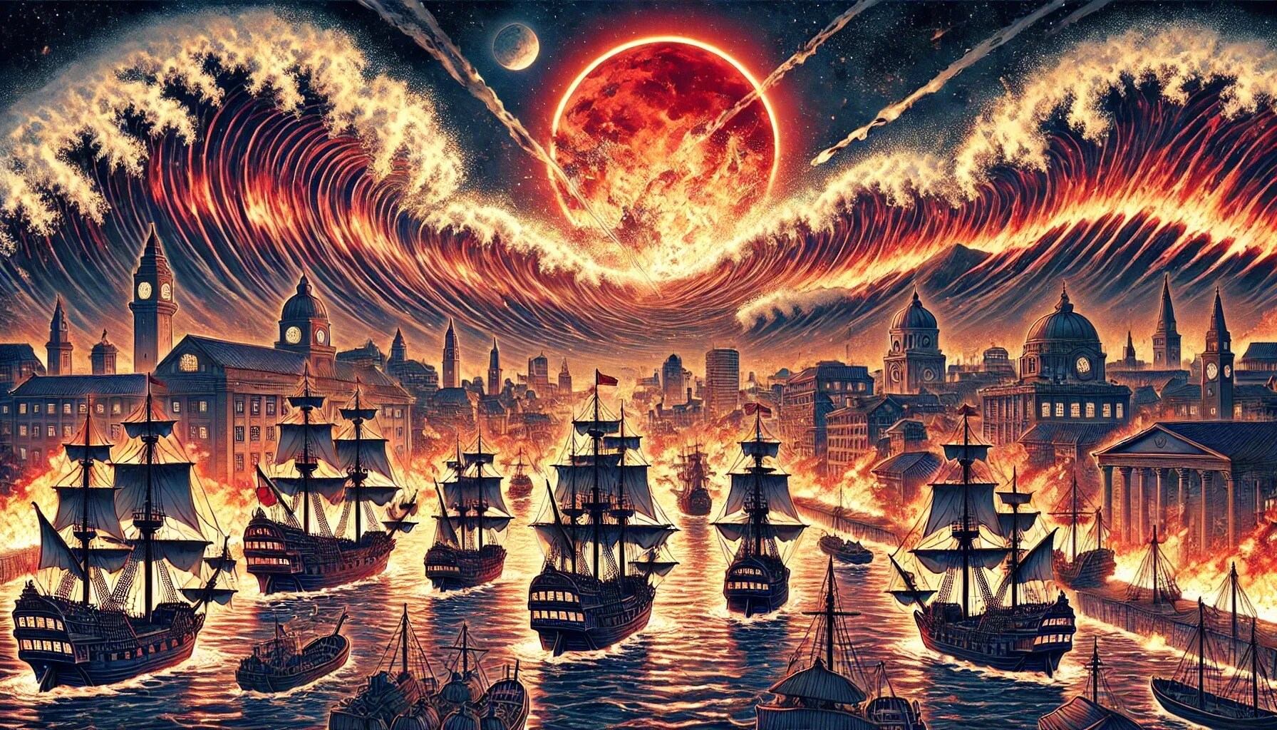 海を割る巨大な衝撃波が、港に停泊する船を襲った。