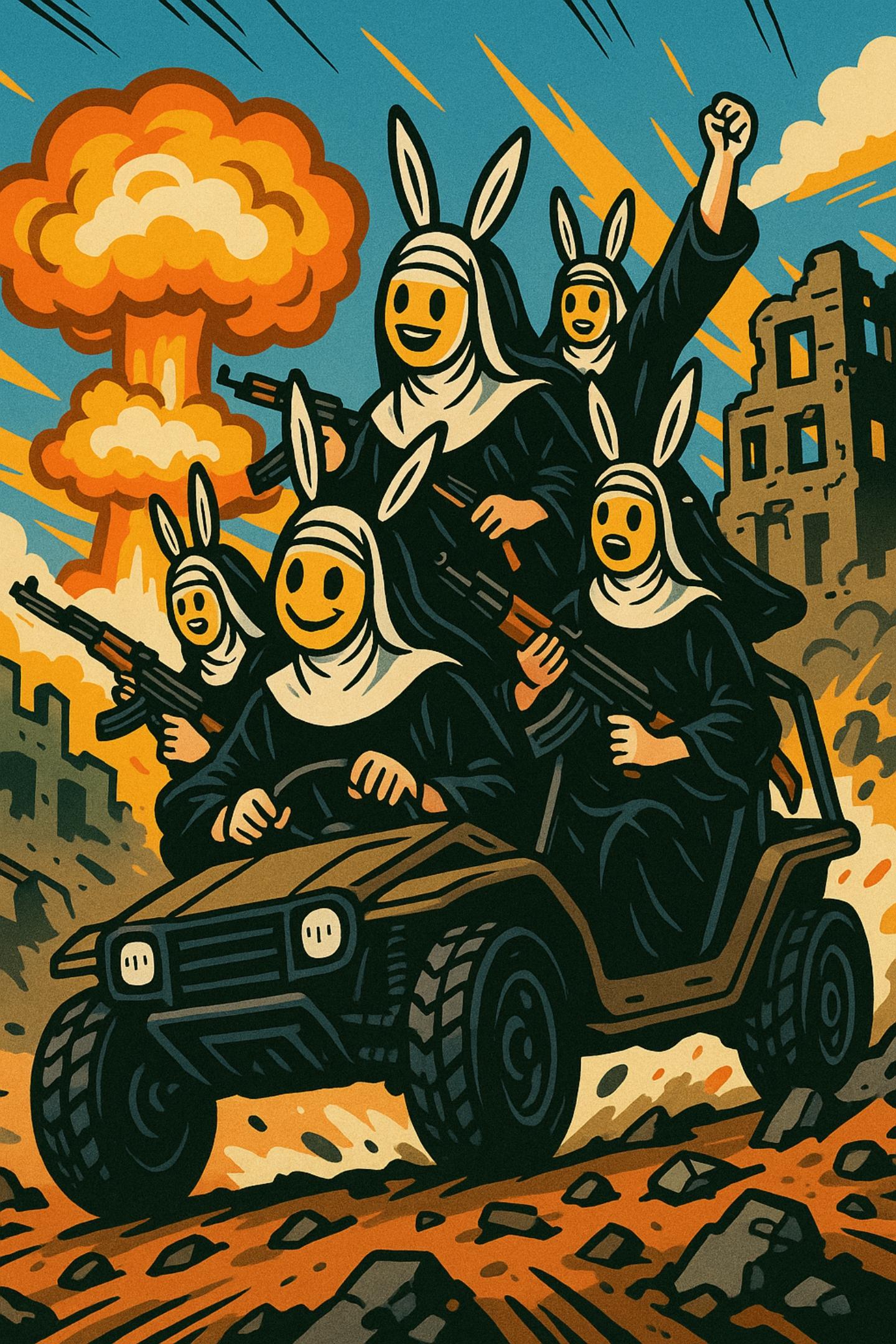 終末の地にて傭兵業をしていたり、時には身寄りのない子らを保護し、生き抜く術を授けるネオ越夜隊、〈微笑みの一派〉、その魂は弾兎饗弾にもあり、今日も荒野をバギーで駆け抜けていく!