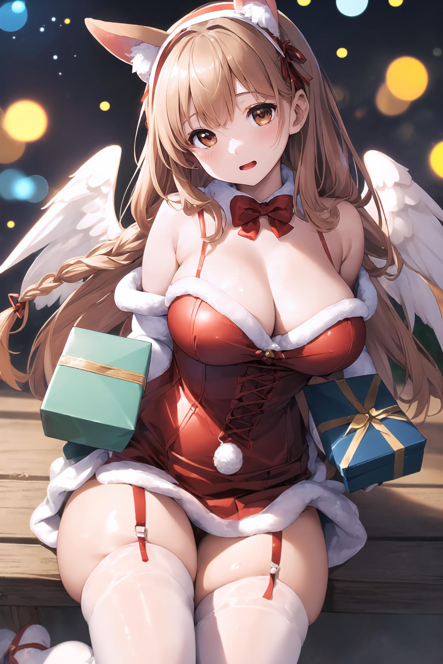 ありそうで無かった!天使の羽つきサンタガールを生成してみました。^^