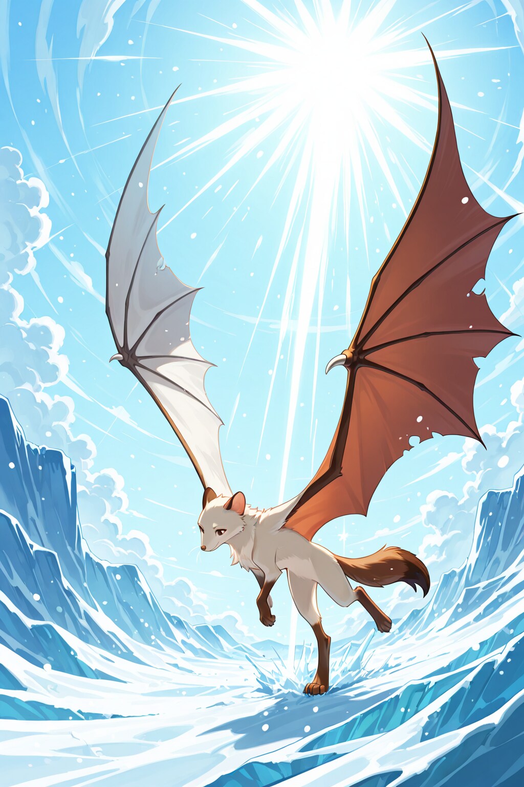 生態・説明:雪原に生息している背中に蝙蝠の翼をもつ鼬に似た魔獣。雑食性で小動物や木の実を食料としている