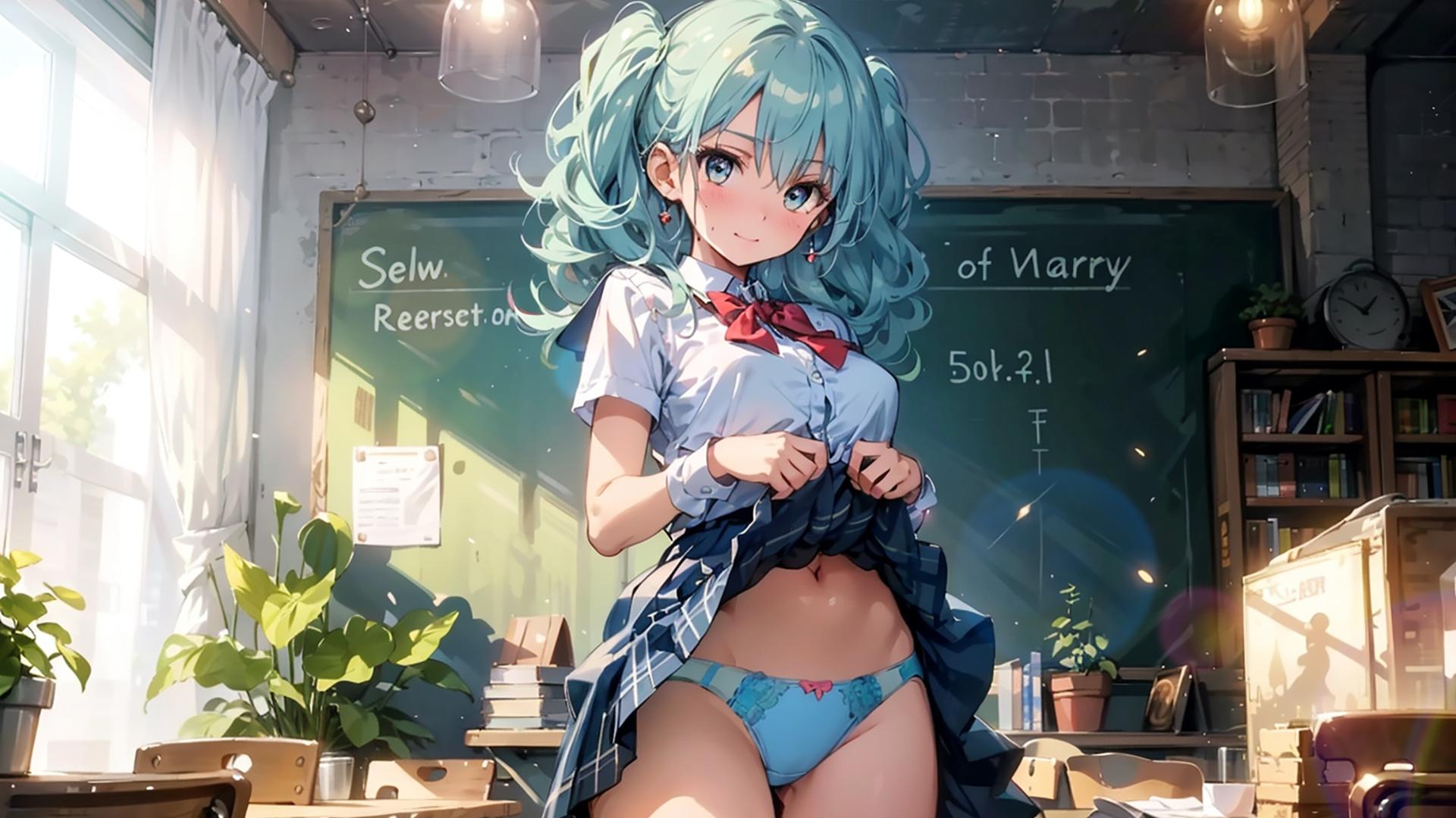 一枚目がちちぷい生成画像を横1920pixelに拡大後、加筆修整したもの、
