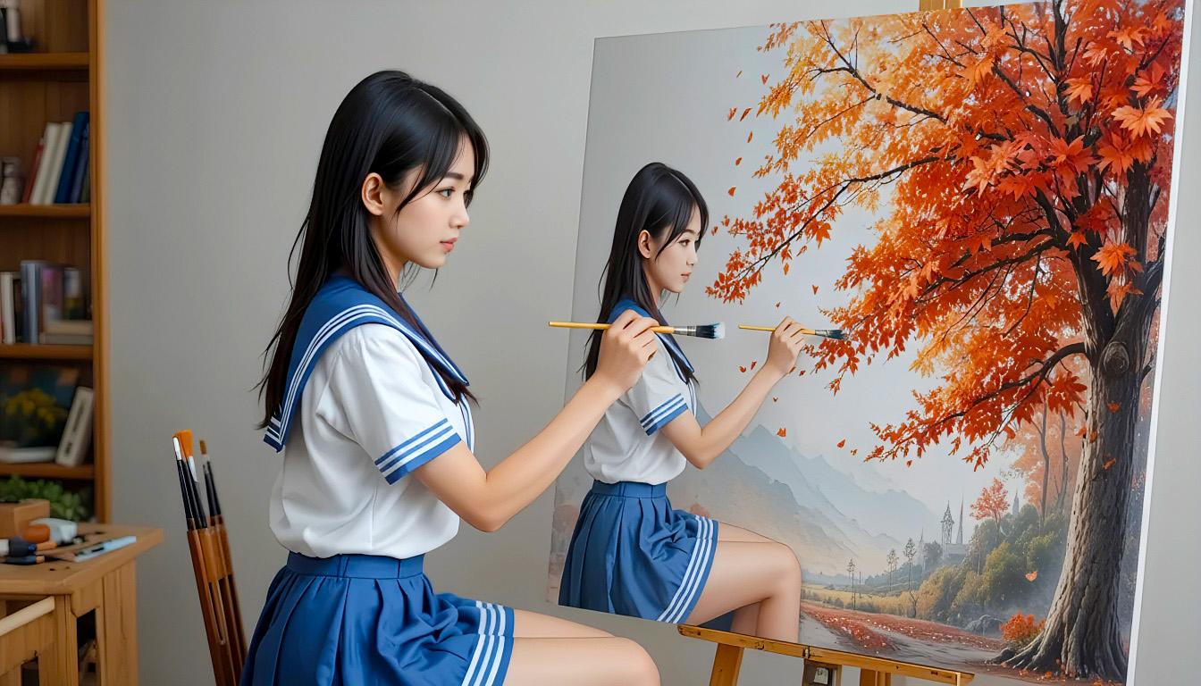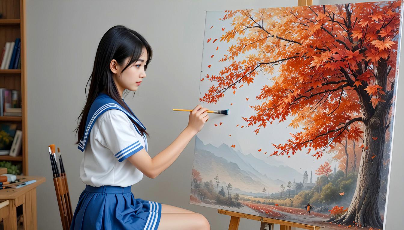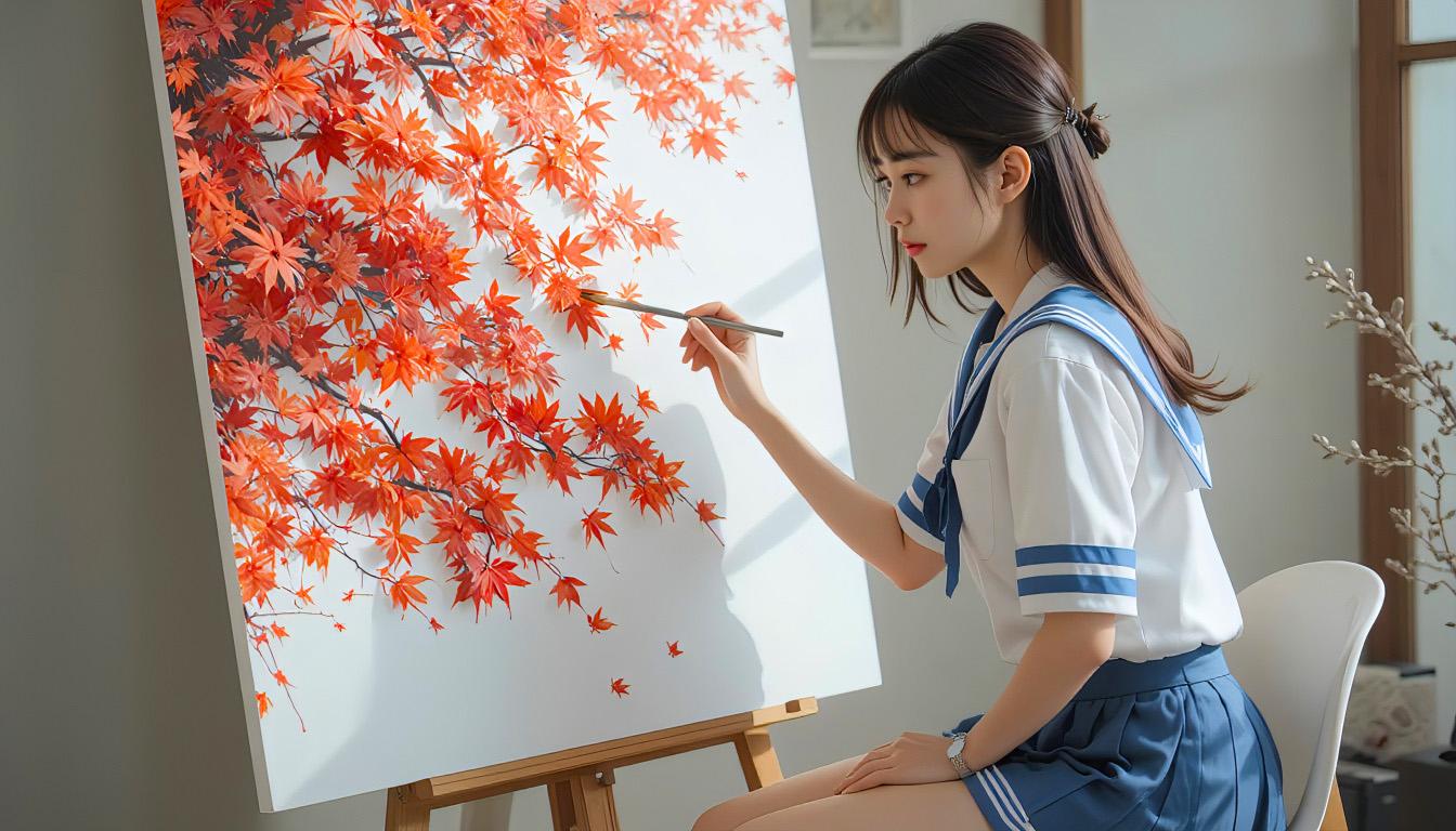 「紅葉を描く君」が2025年11月9日のAIフォトデイリーランキング7位に入りました