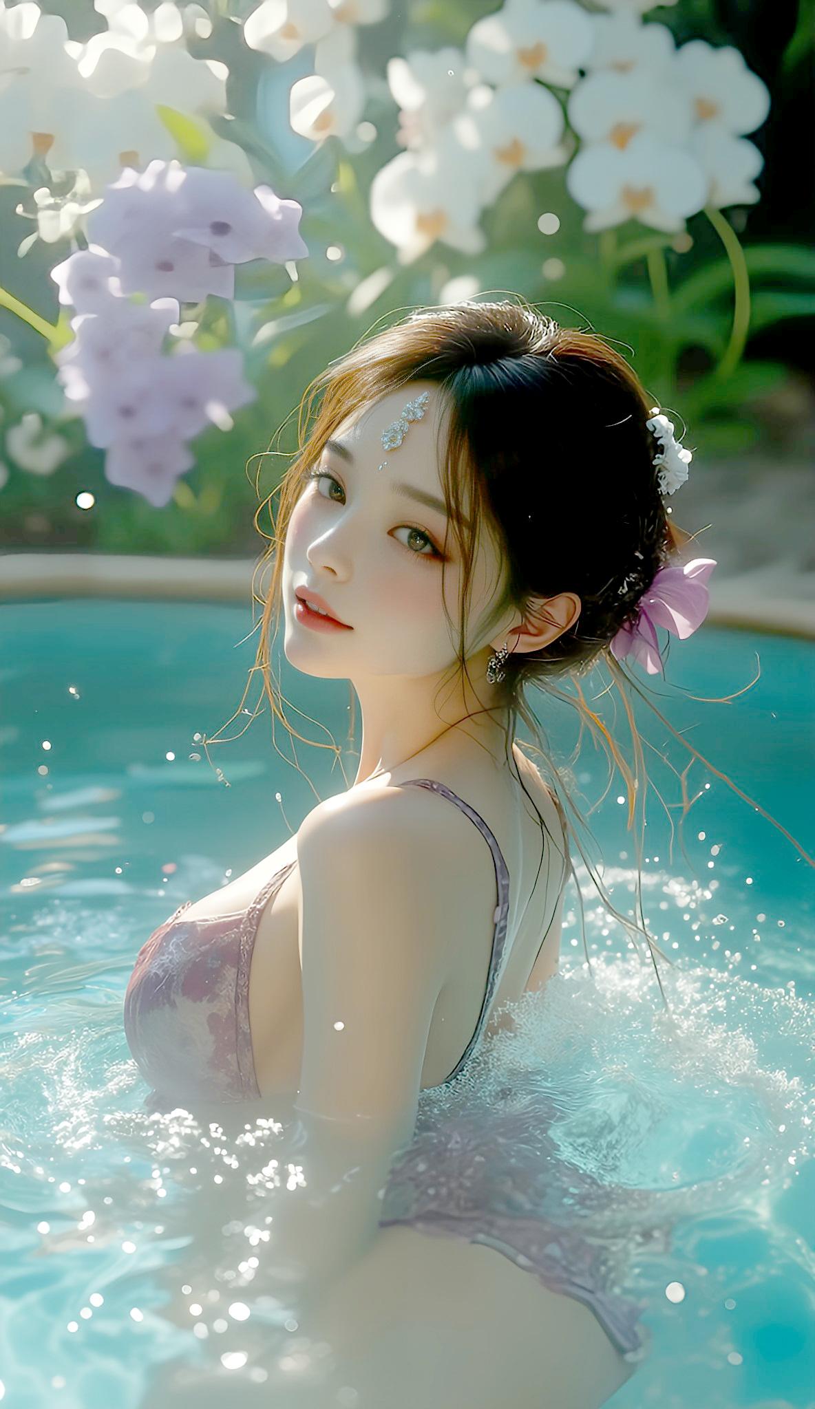 「花とプールの君」が2025年3月1日のAIフォトデイリーランキング15位に入りました