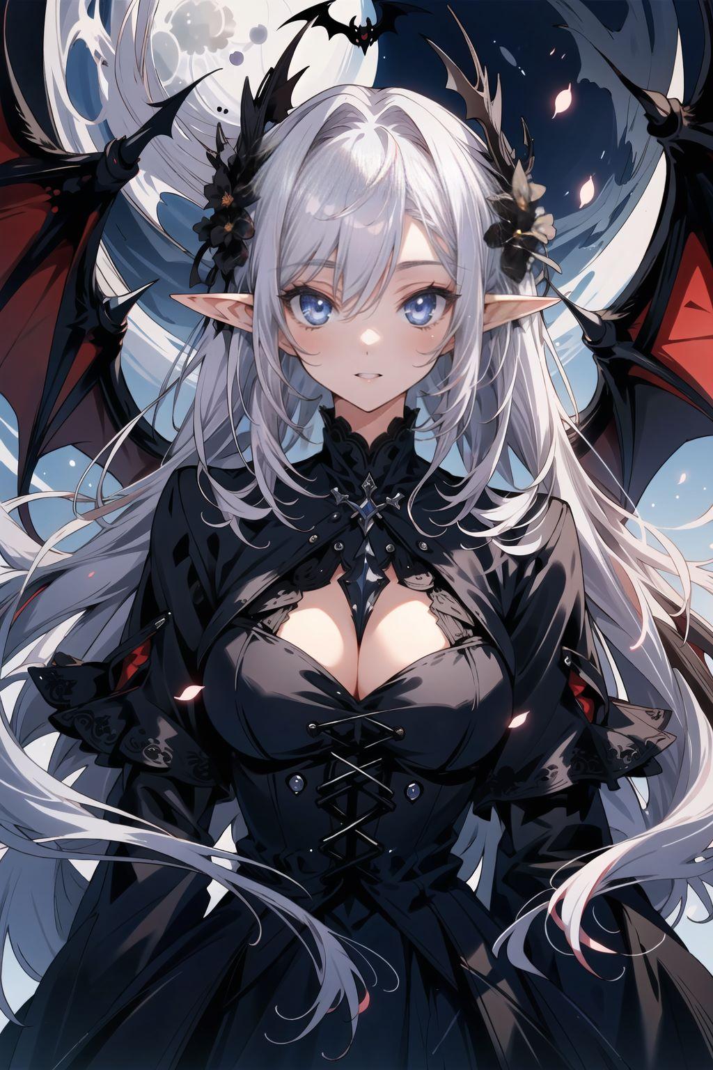 エルフなのにヴァンパイアで、銀の長髪で青目、黒いゴスロリファッションが特徴です。
