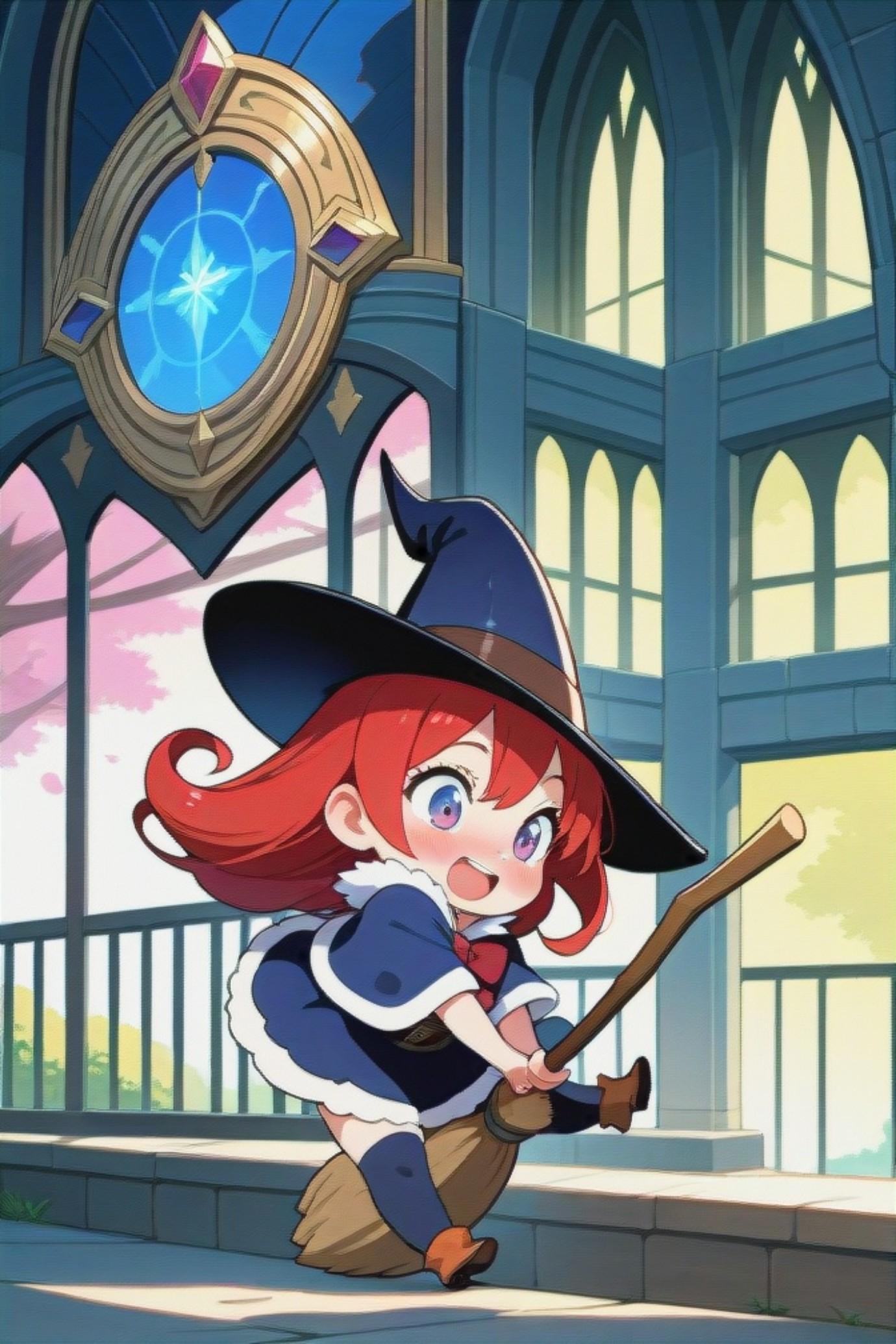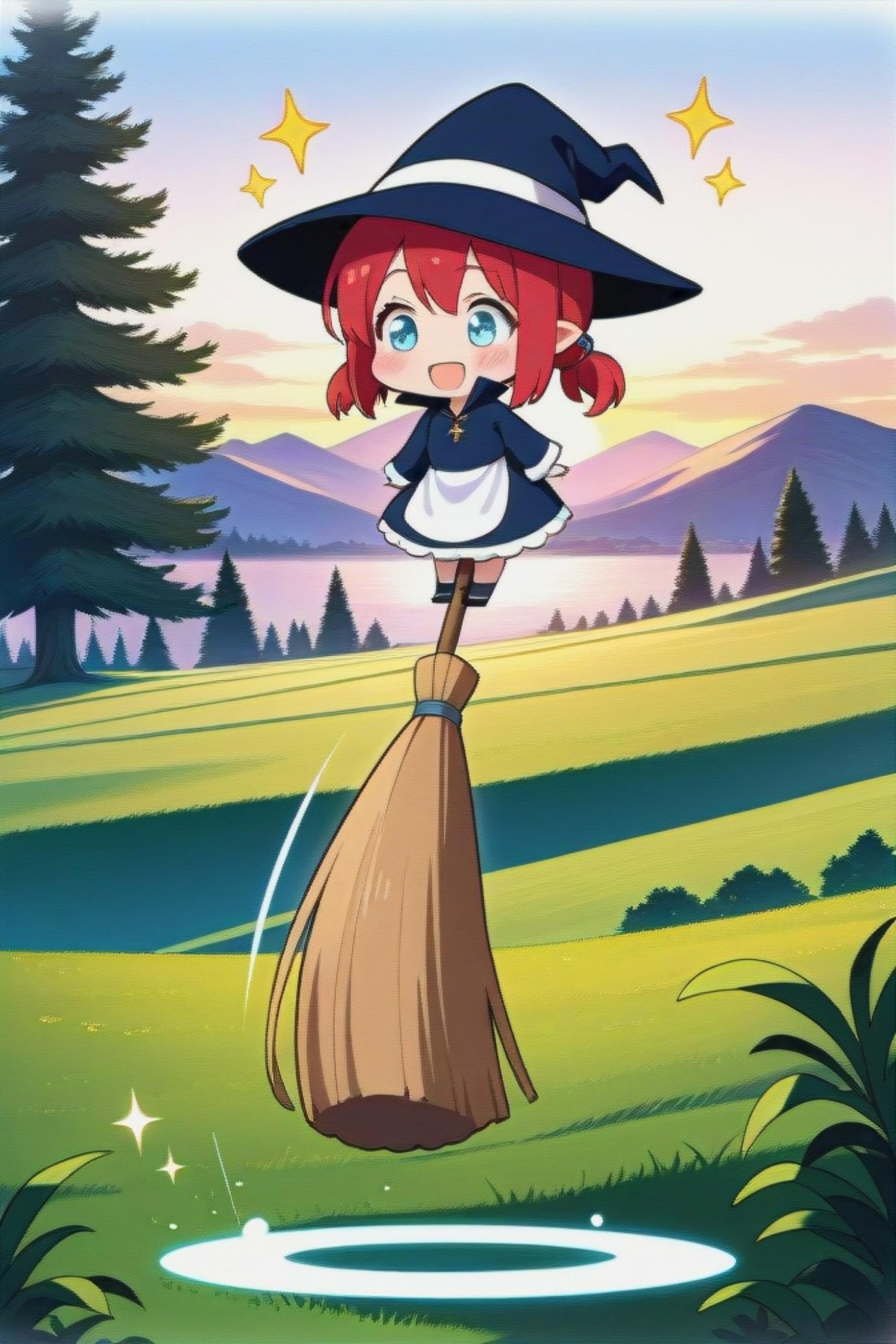 箒に乗る赤髪ちゃん