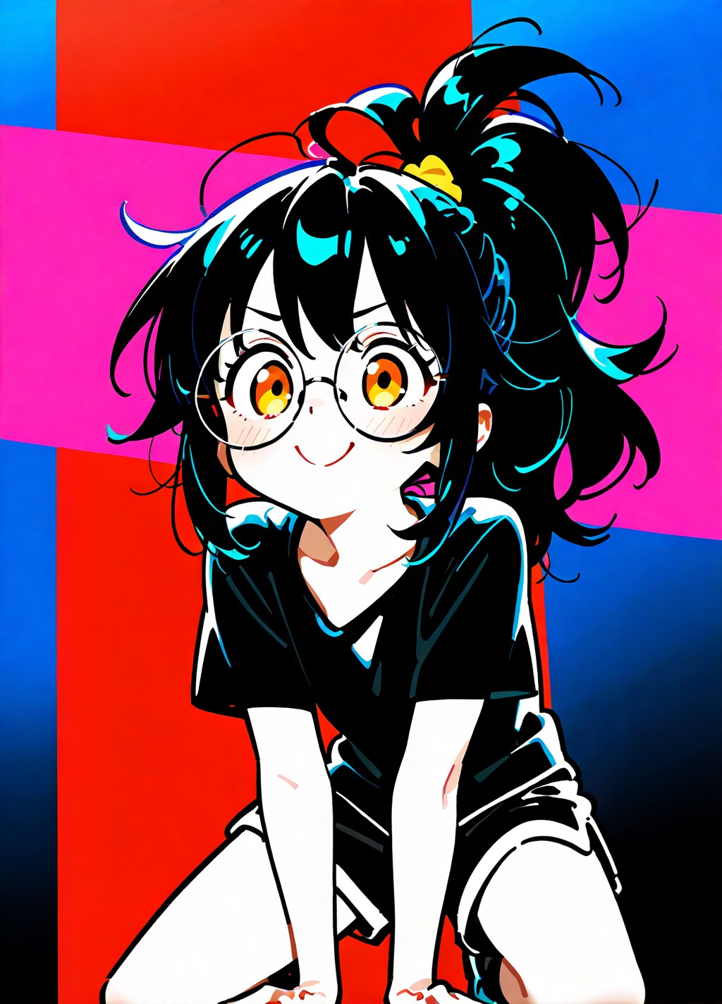 jacket partially removed, heart in eye, burnt clothes, holding fishing rod, kanji, doujin cover, pentagram, tape gag, adjusting headwear, red socks, friends, cloud print, coke-bottle glasses, oral invitation, competition school swimsuit, barbell piercing, gradient legwear, prisoner, blood on breasts, wind chime, carrying over shoulder, tape measure, flaming weapon