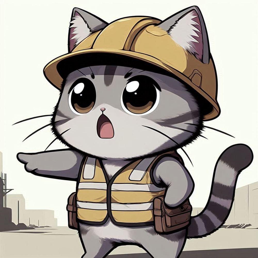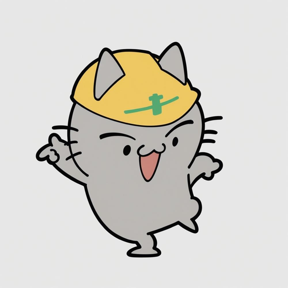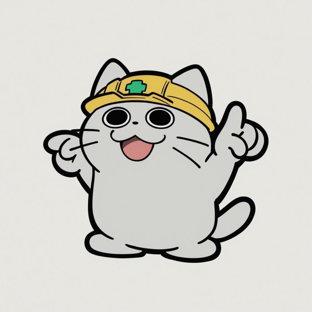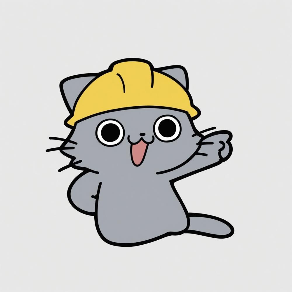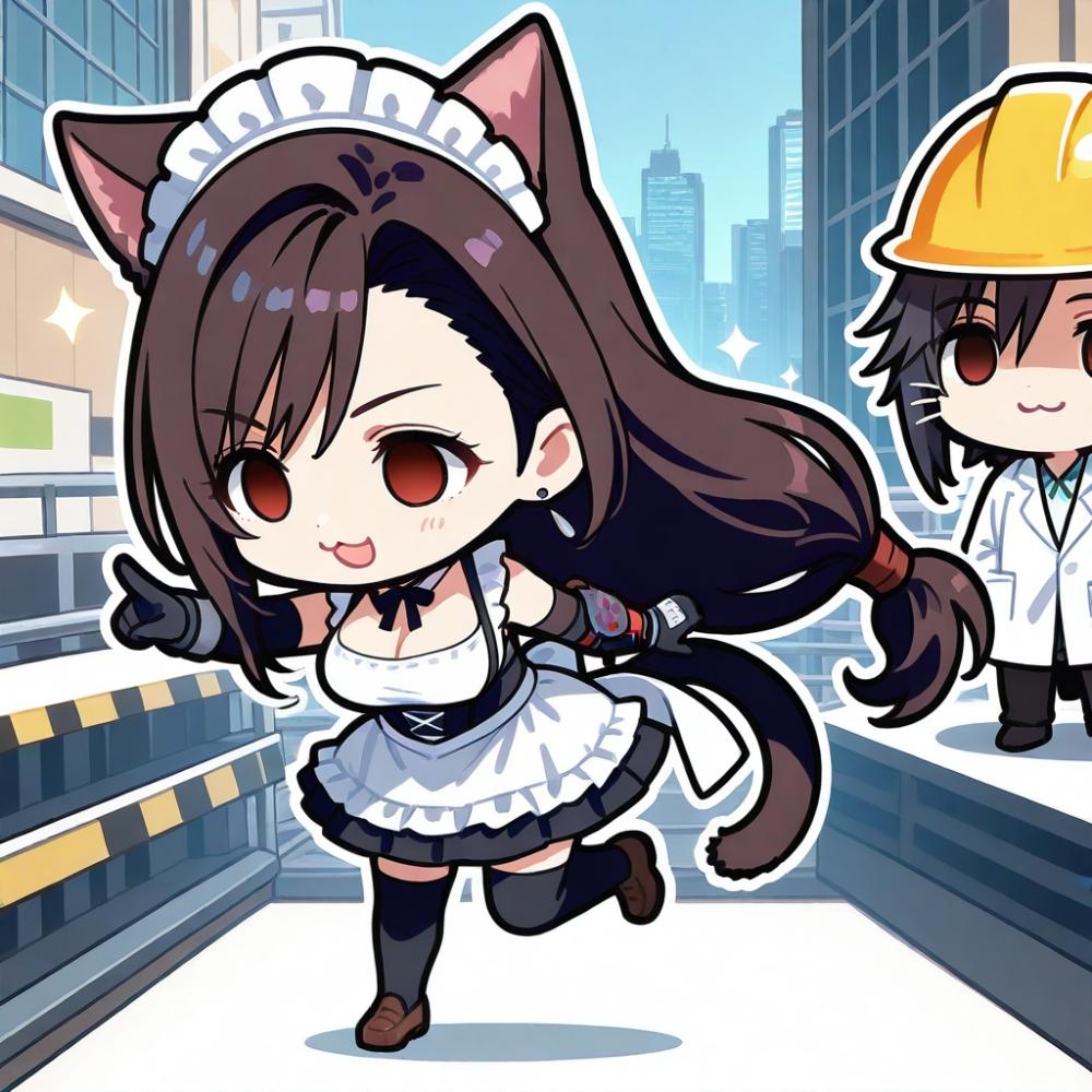 SDチビアニメ風、指差し現場猫メイド女医コスプレ人妻