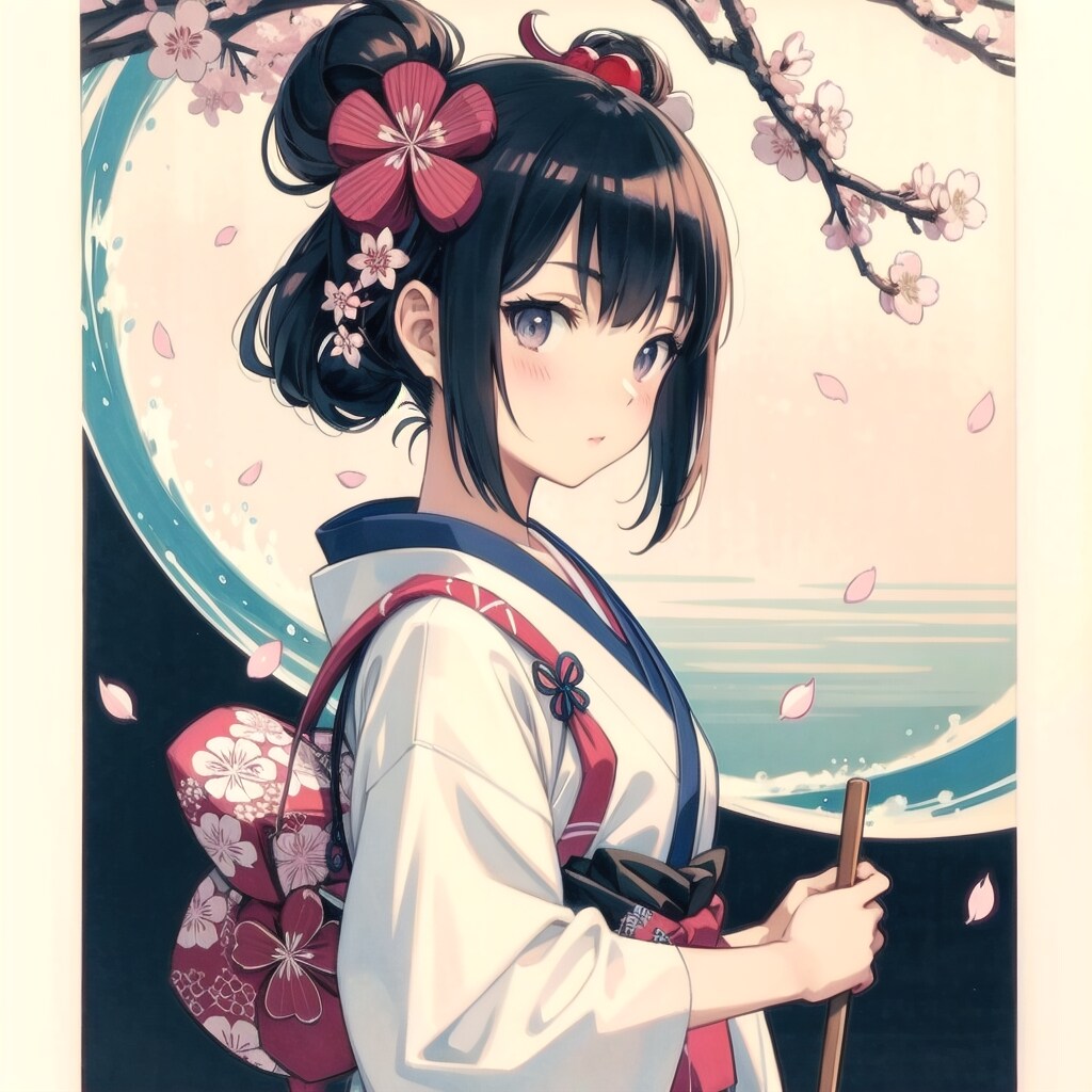 5:traditional, hokusai, cherry blossoms, girl, text:1.65