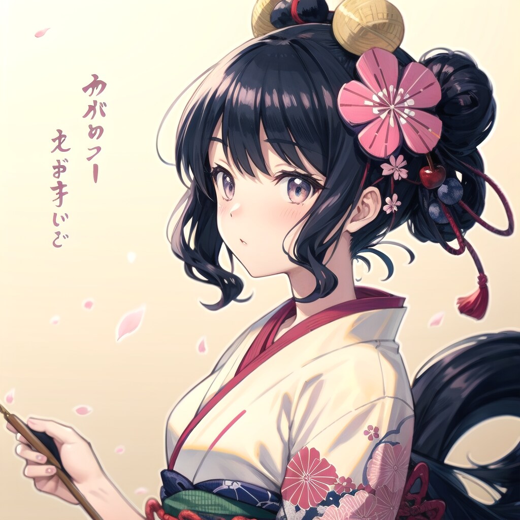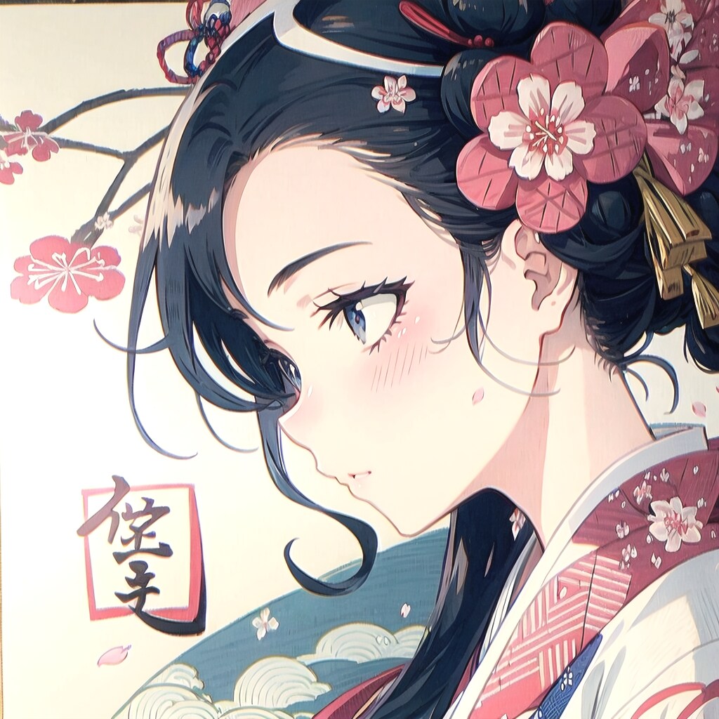 1・2:traditional hokusai cherry blossoms girl, text:1.65