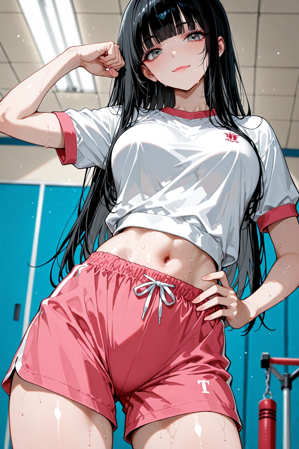 このモデルでこのプロンプトの書き方で筋肉質にするかしないかでは同シード値の変化で構図はほとんど変わらなかったのでシード値をそろえて描いてもらった