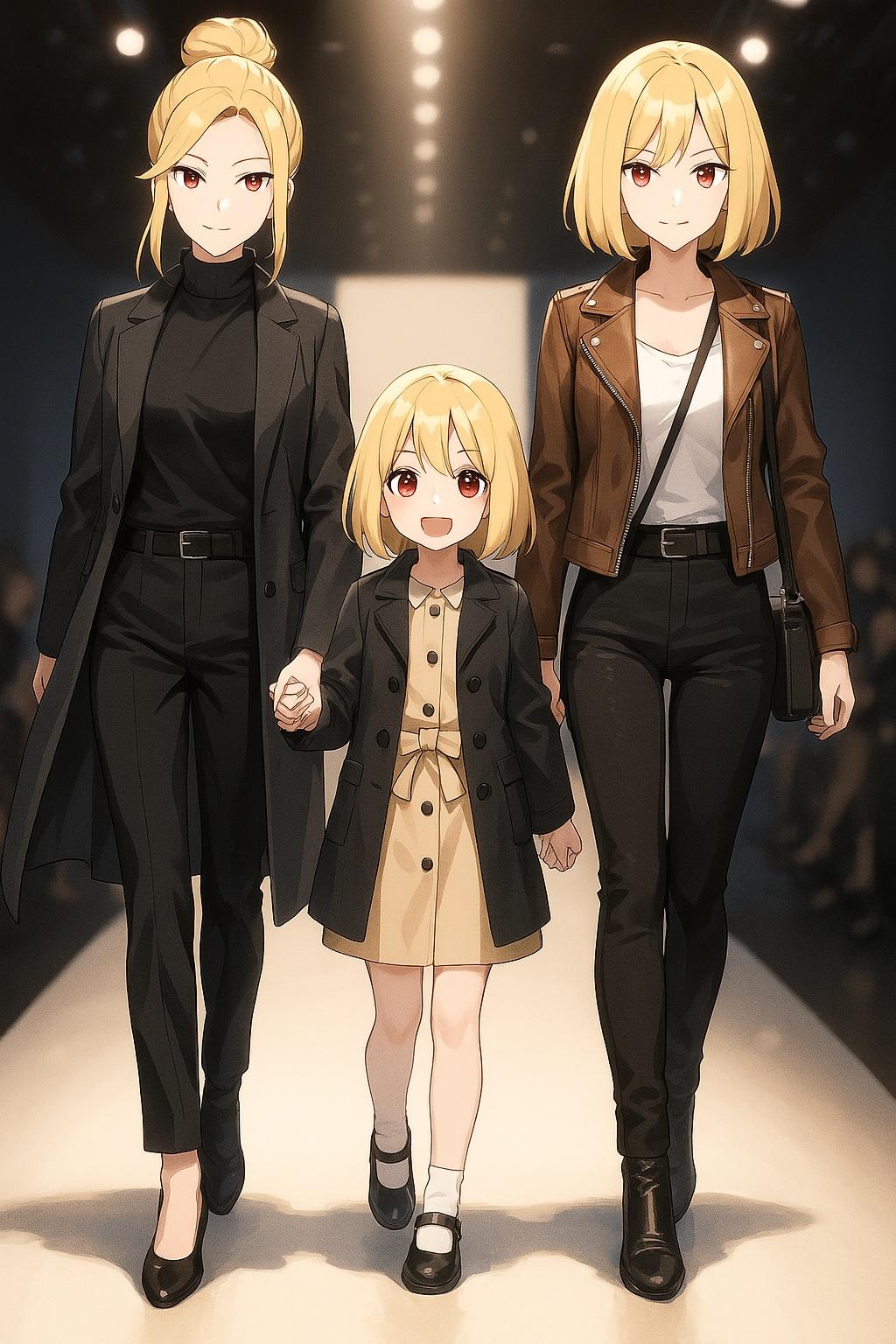 ランウェイを颯爽と歩く三世代の美女たち。 幼稚園の送り迎え、ただの送り迎えじゃない。 スタイルと愛情、両方そろって一歩ずつ。