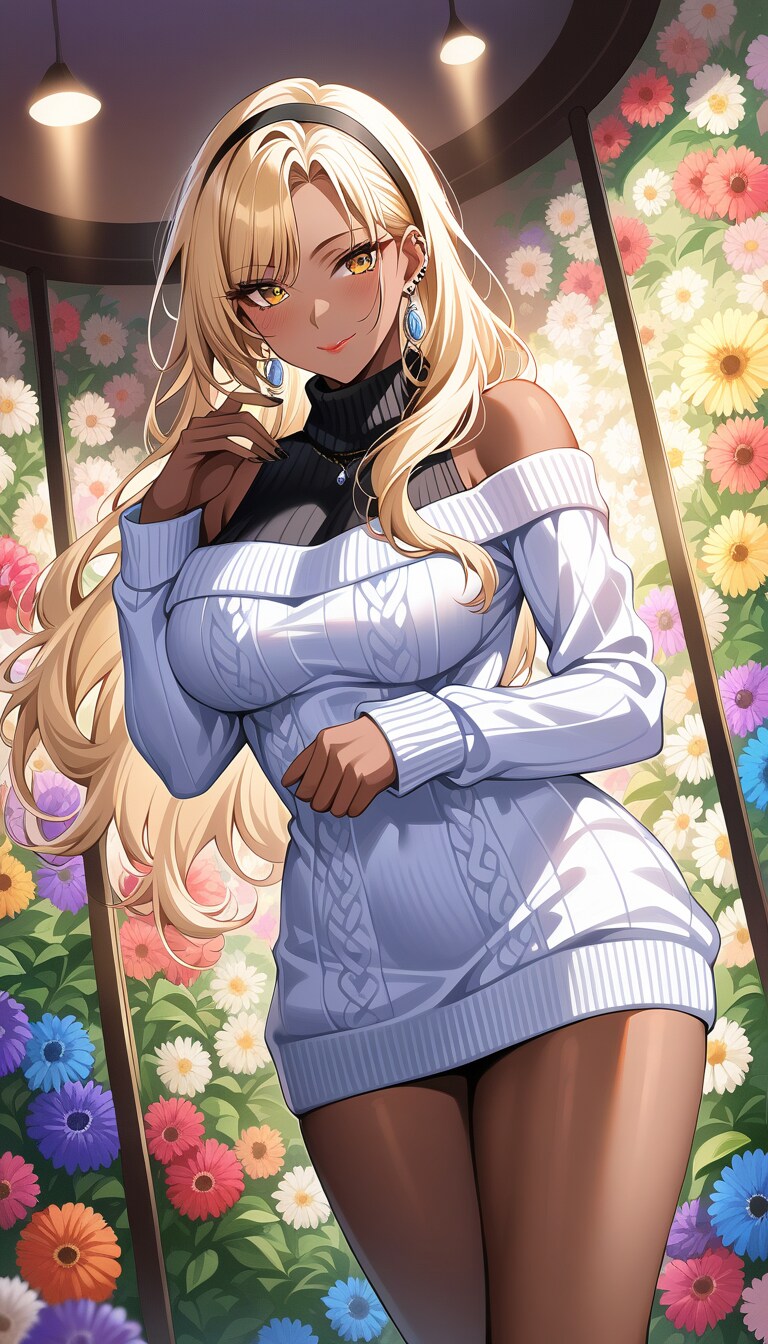 夏の暑い中でニットセーターを華麗に着こなすお姉さん達って感じです。