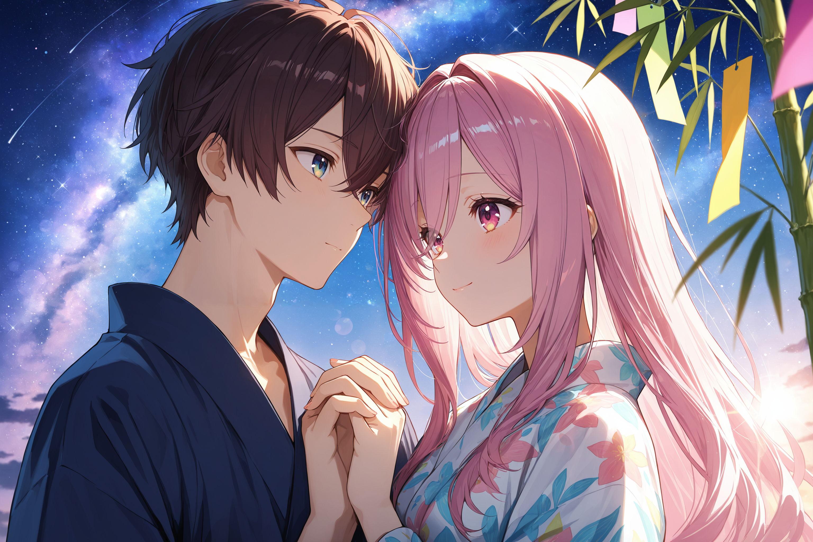 七夕なので、織姫と彦星を描いてみました~<(_ _)>