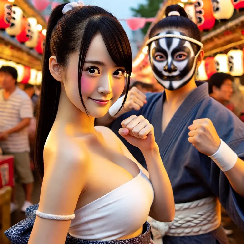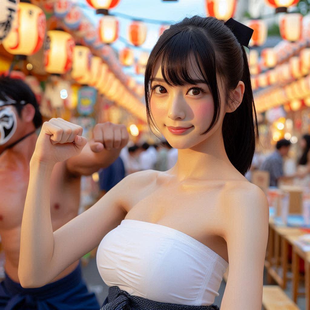 「祭りの夜の女性達」を参考に晒し巻きバージョンの執事ちゃんを生成してみました。