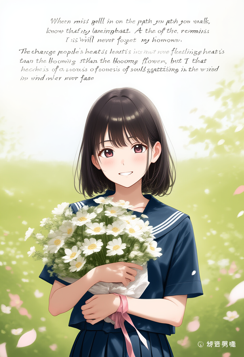毎月の花の花言葉を紹介をする時の元イラスト「花束の女の子 咲夜」です。