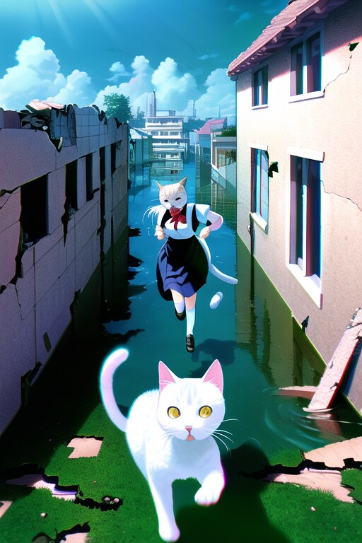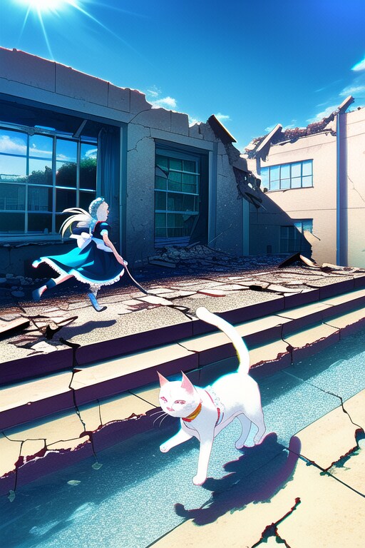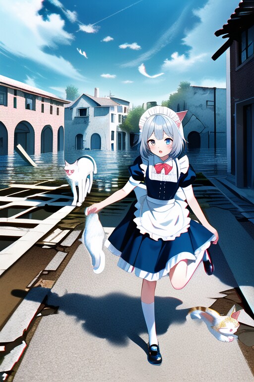 [猫のご主人様とメイドの私]ご主人様を追いかける(NovelAI)