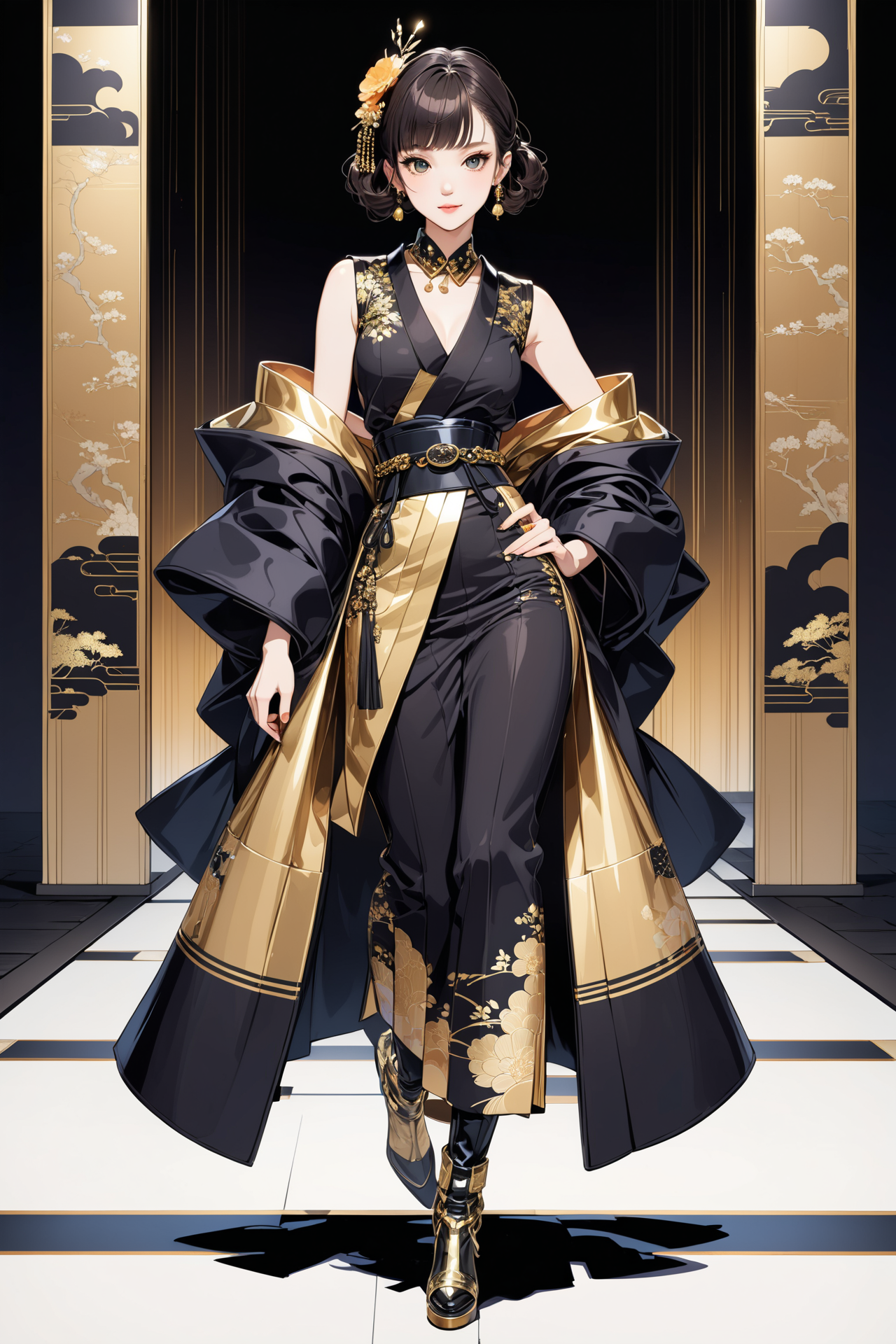 現代風にアレンジした着物のファッションショーに出演するモデルさんです。