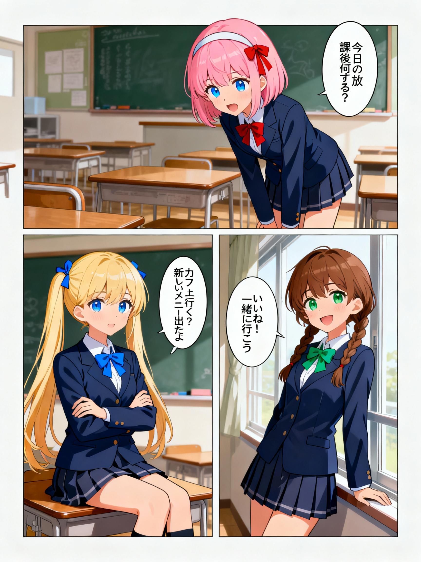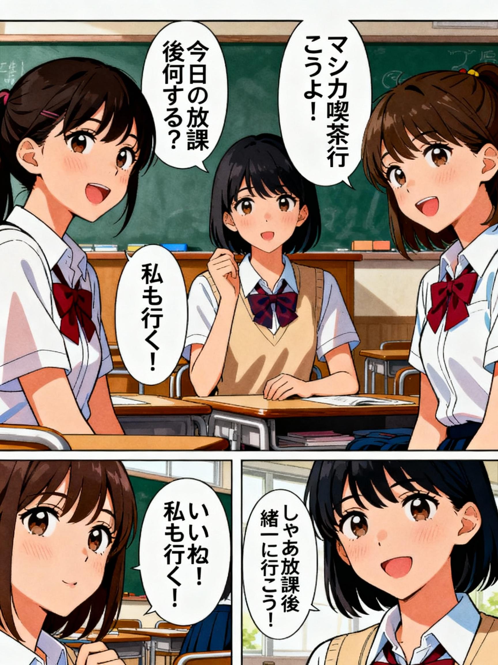 ③のキャラの描き分けしないで女子高生のおしゃべりだけで作ったものが1番漫画としてわかりやすい。