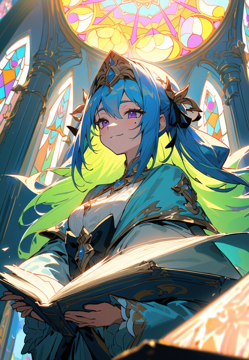 (女性の職業、図書館、遠い土地、繊細な手、輝く目、古代の写本、大きなアーチ窓、知的な追求:1.1),